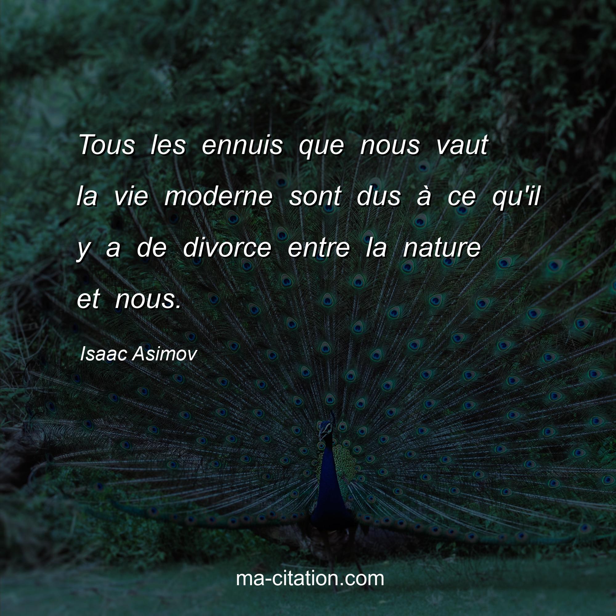 Citation sur la vie d'Isaac Asimov :Tous les ennuis que nous vaut la vie moderne sont dus à ce qu'il y a de divorce entre la nature et nous.