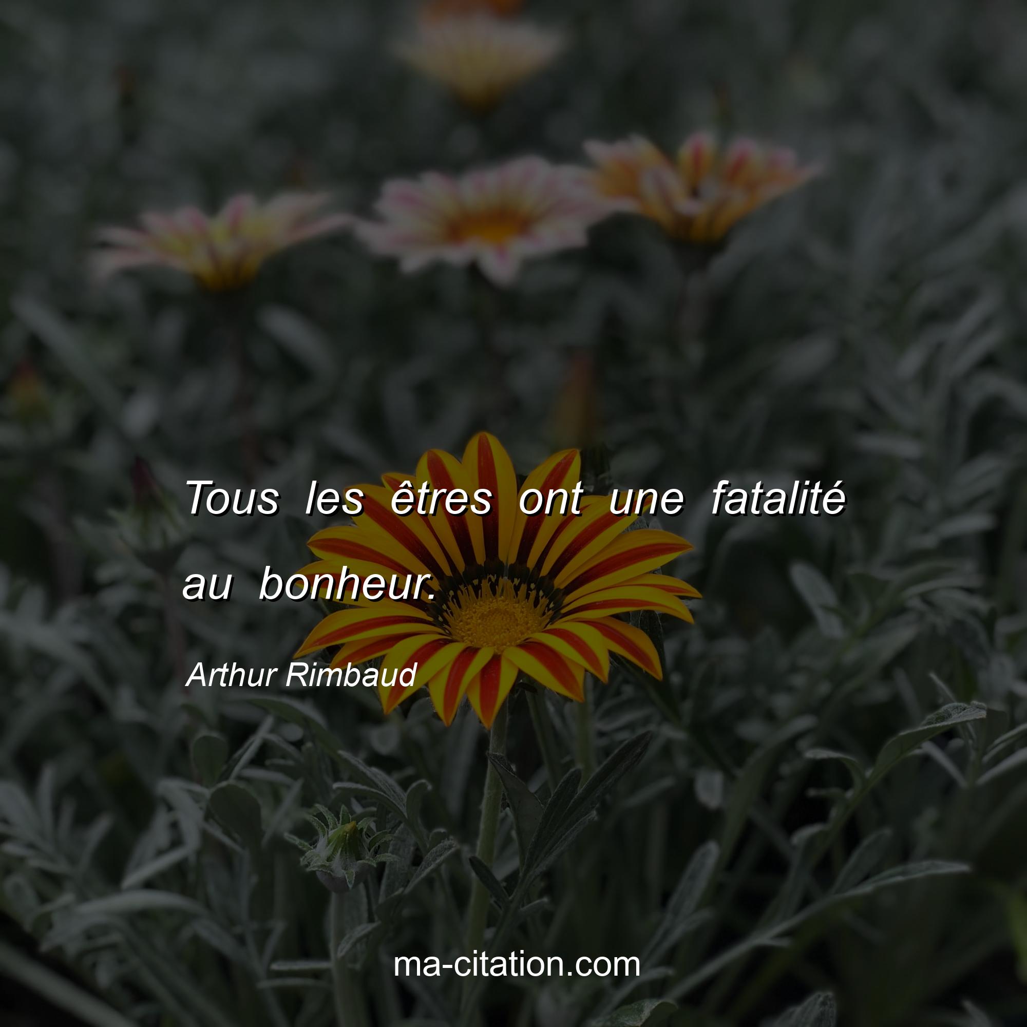 Arthur Rimbaud est l'auteur de la citation sur la vie "Tous les êtres ont une fatalité au bonheur.".