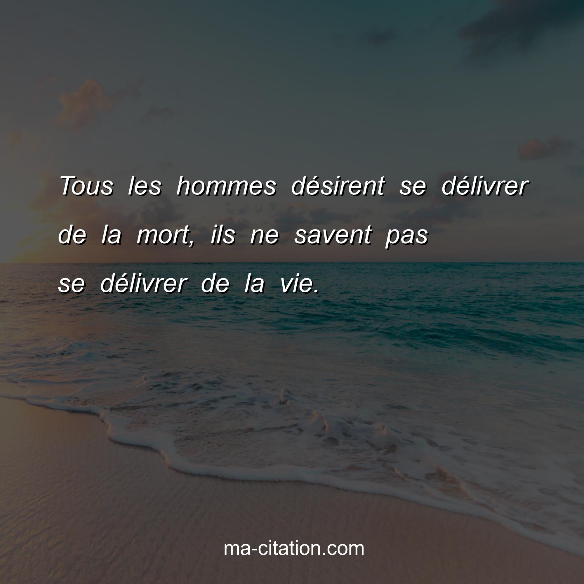 Citation sur la vie :Tous les hommes désirent se délivrer de la mort, ils ne savent pas se délivrer de la vie.