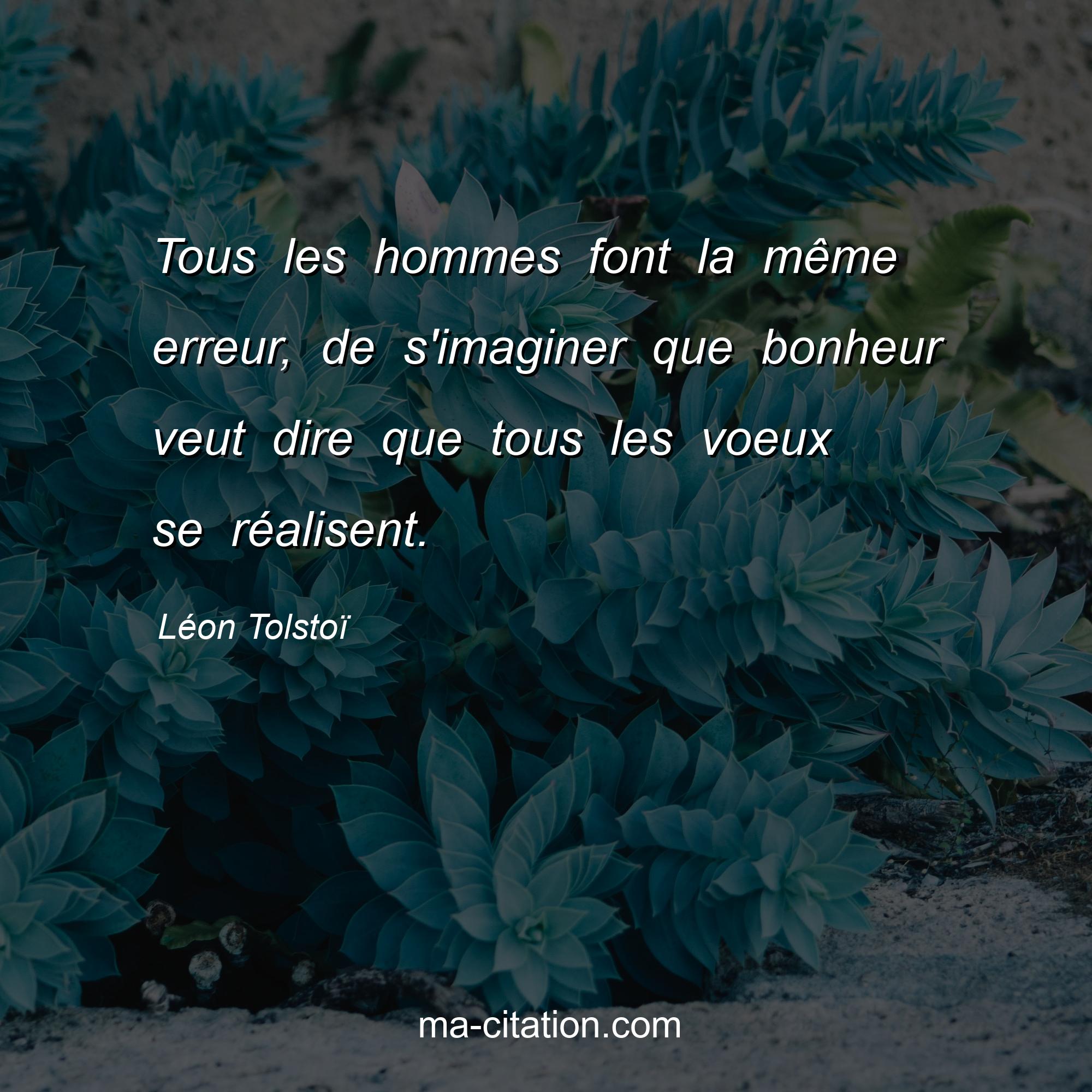 Citation sur la vie de Léon Tolstoï :Tous les hommes font la même erreur, de s'imaginer que bonheur veut dire que tous les voeux se réalisent.