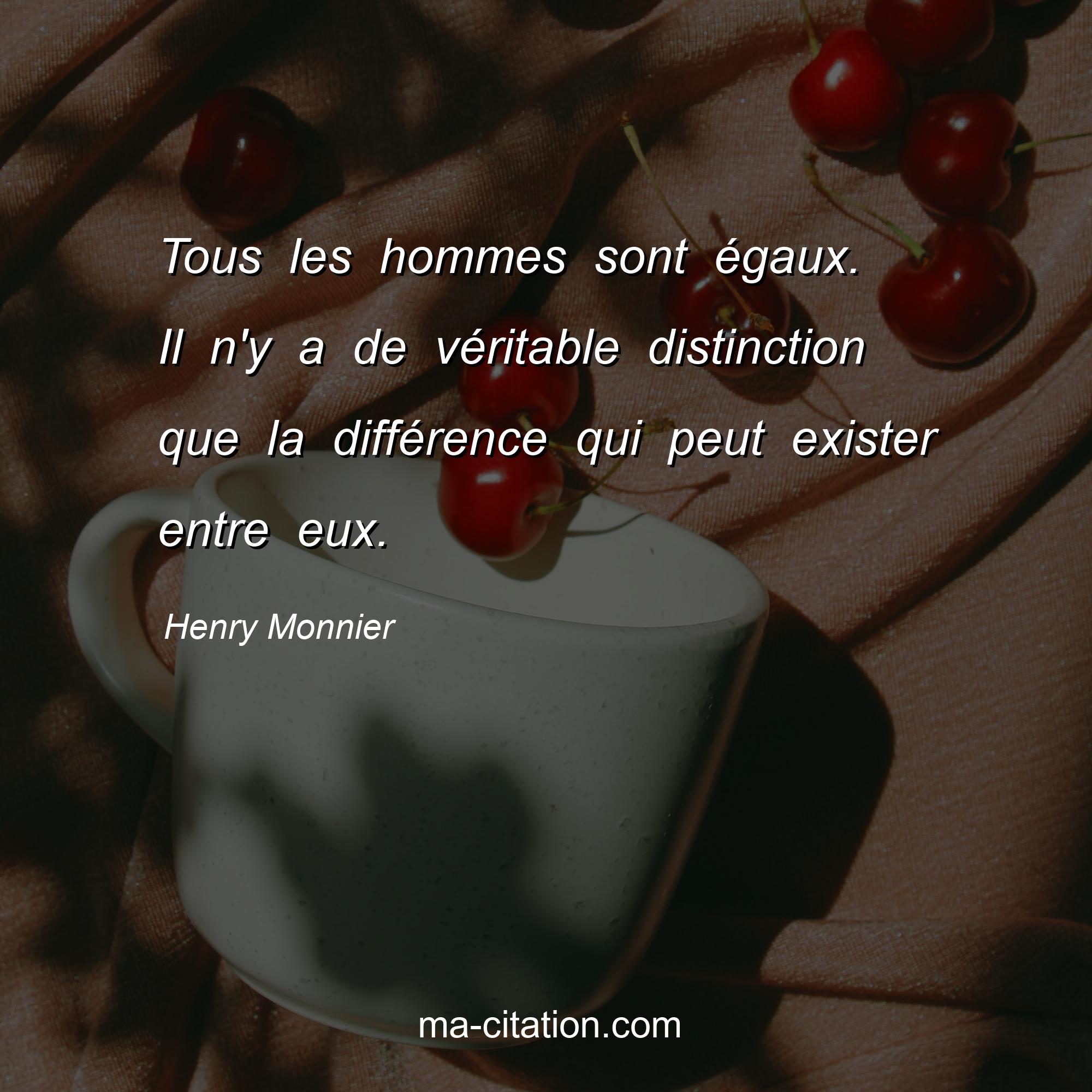 Citation sur la vie de Henry Monnier :Tous les hommes sont égaux. Il n'y a de véritable distinction que la différence qui peut exister entre eux.
