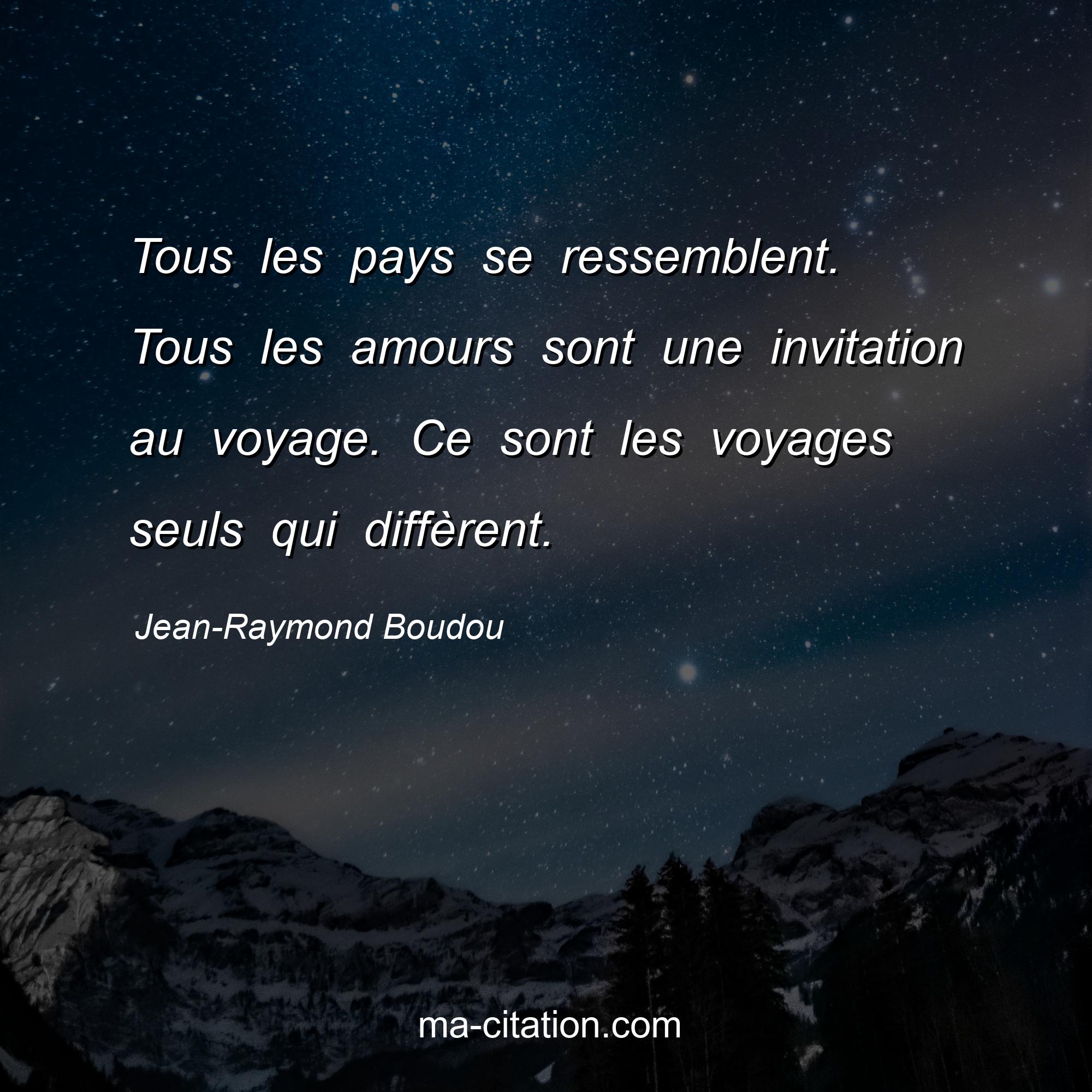 Jean-Raymond Boudou est l'auteur de la citation sur la vie "Tous les pays se ressemblent. Tous les amours sont une invitation au voyage. Ce sont les voyages seuls qui diffèrent.".