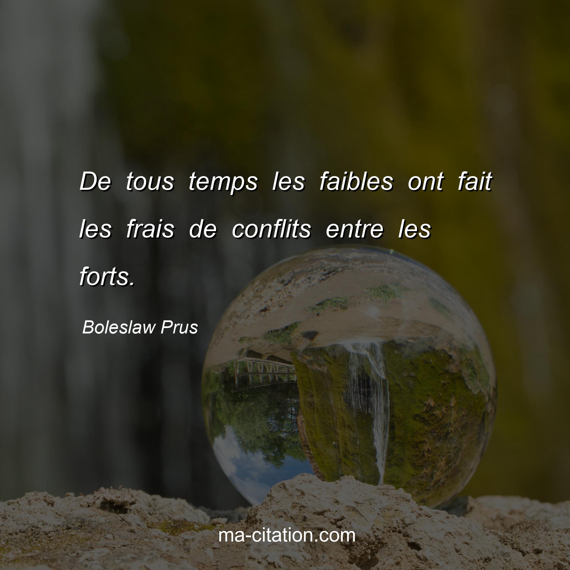 Citation sur la vie de Boleslaw Prus :De tous temps les faibles ont fait les frais de conflits entre les forts.