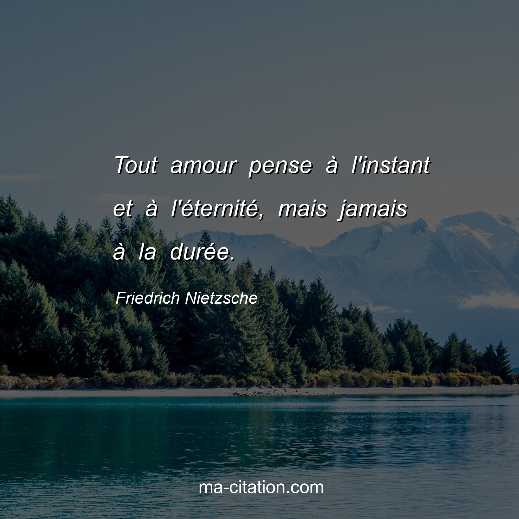 Citation sur la vie de Friedrich Nietzsche :Tout amour pense à l'instant et à l'éternité, mais jamais à la durée.