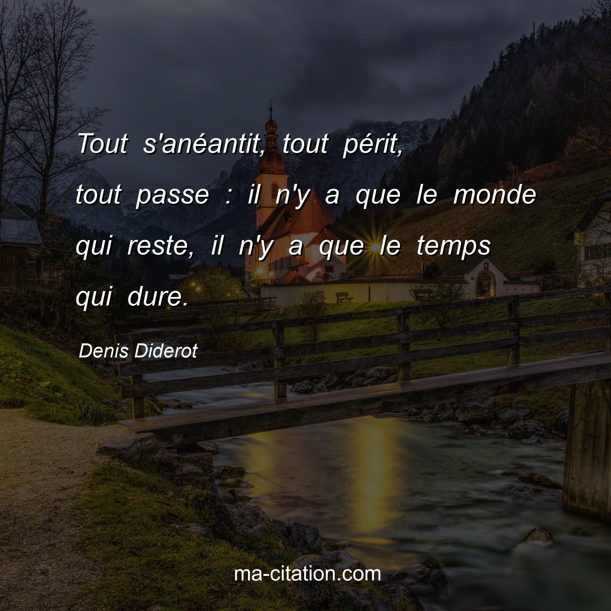 Citation sur la vie de Denis Diderot :Tout s'anéantit, tout périt, tout passe : il n'y a que le monde qui reste, il n'y a que le temps qui dure.
