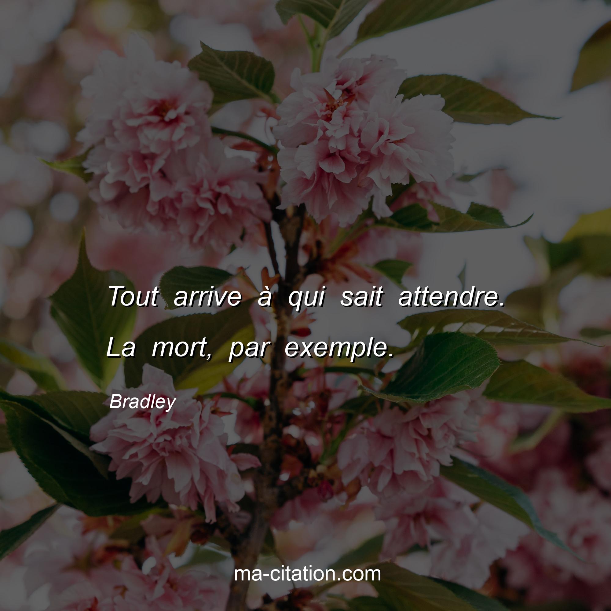 Citation sur la vie de Bradley :Tout arrive à qui sait attendre. La mort, par exemple.