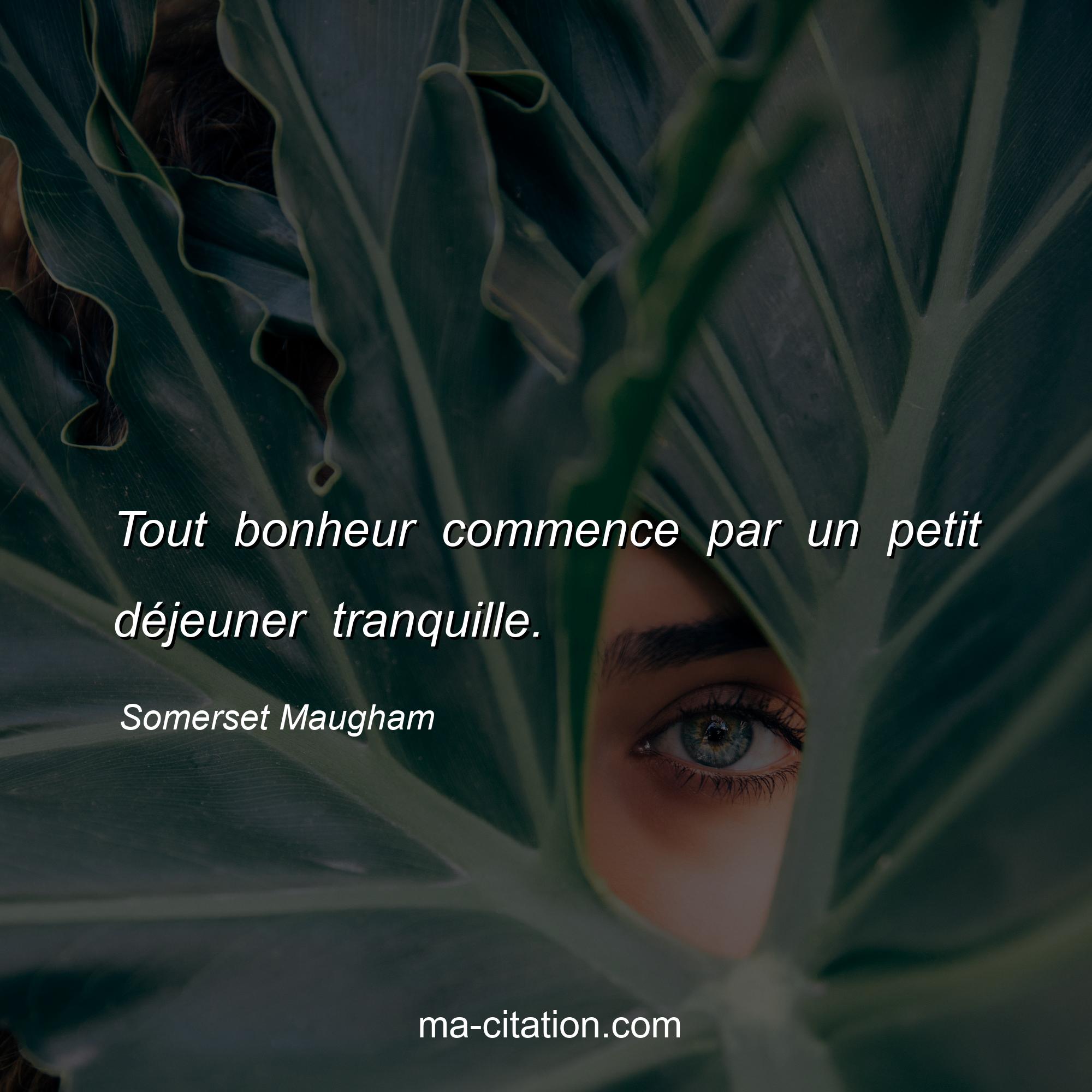 Citation sur la vie de Somerset Maugham :Tout bonheur commence par un petit déjeuner tranquille.