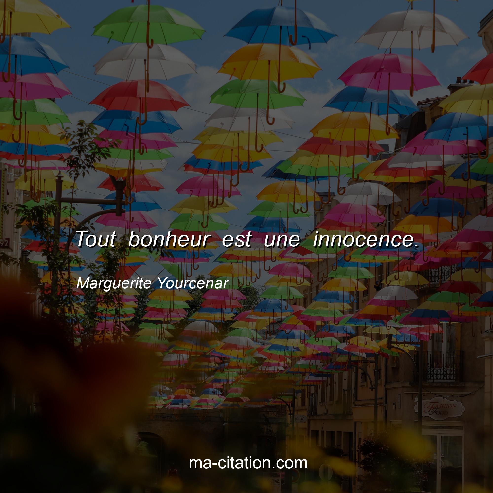 Citation sur la vie de Marguerite Yourcenar :Tout bonheur est une innocence.