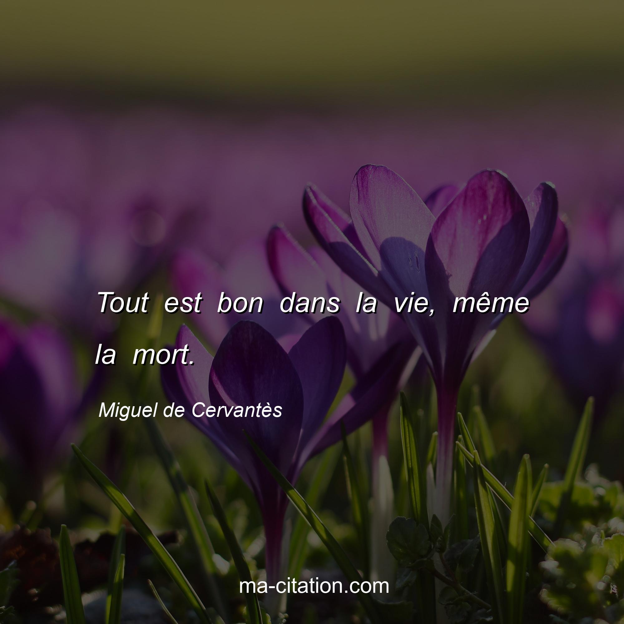 Miguel de Cervantès est l'auteur de la citation sur la vie "Tout est bon dans la vie, même la mort.".
