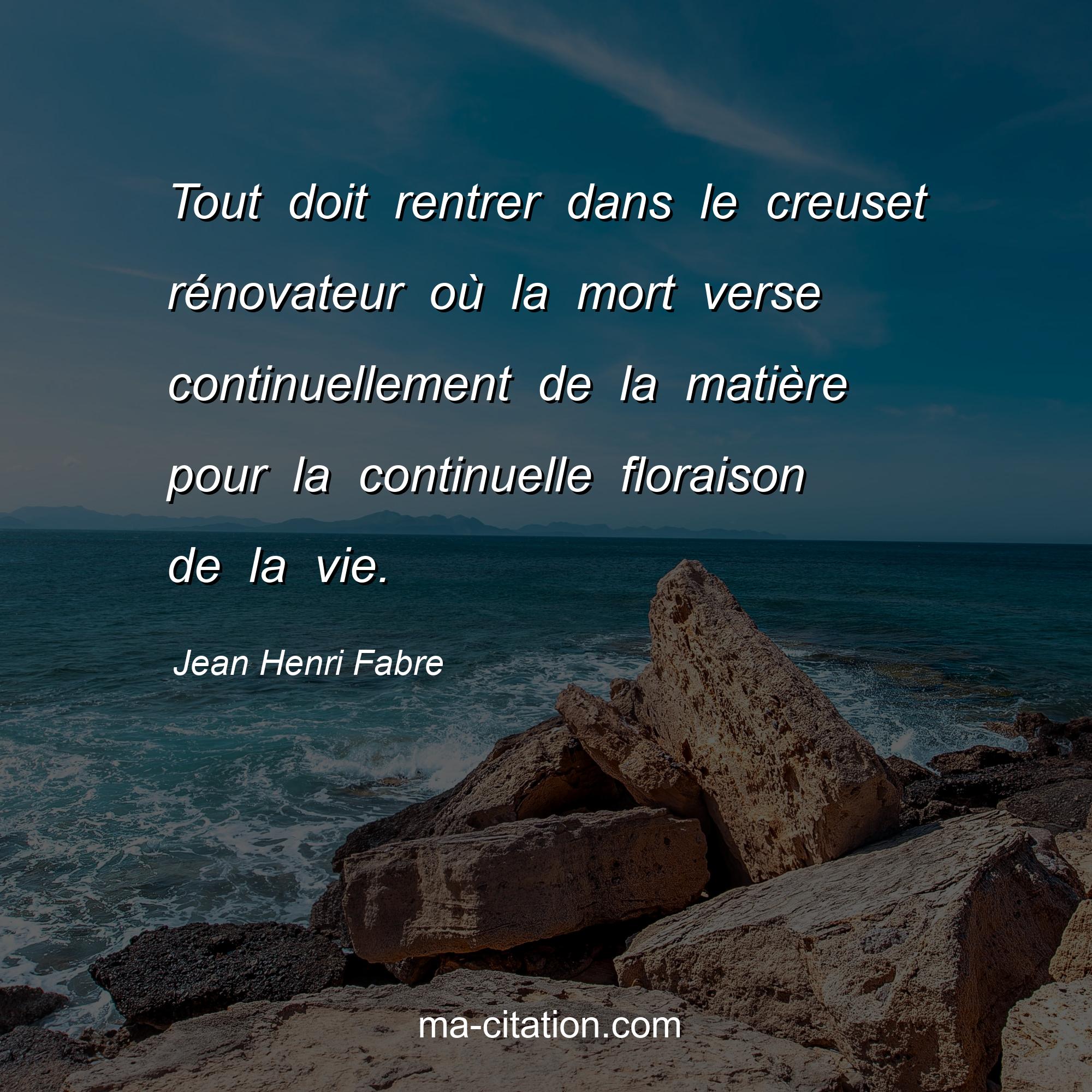 Jean Henri Fabre est l'auteur de la citation sur la vie "Tout doit rentrer dans le creuset rénovateur où la mort verse continuellement de la matière pour la continuelle floraison de la vie.".
