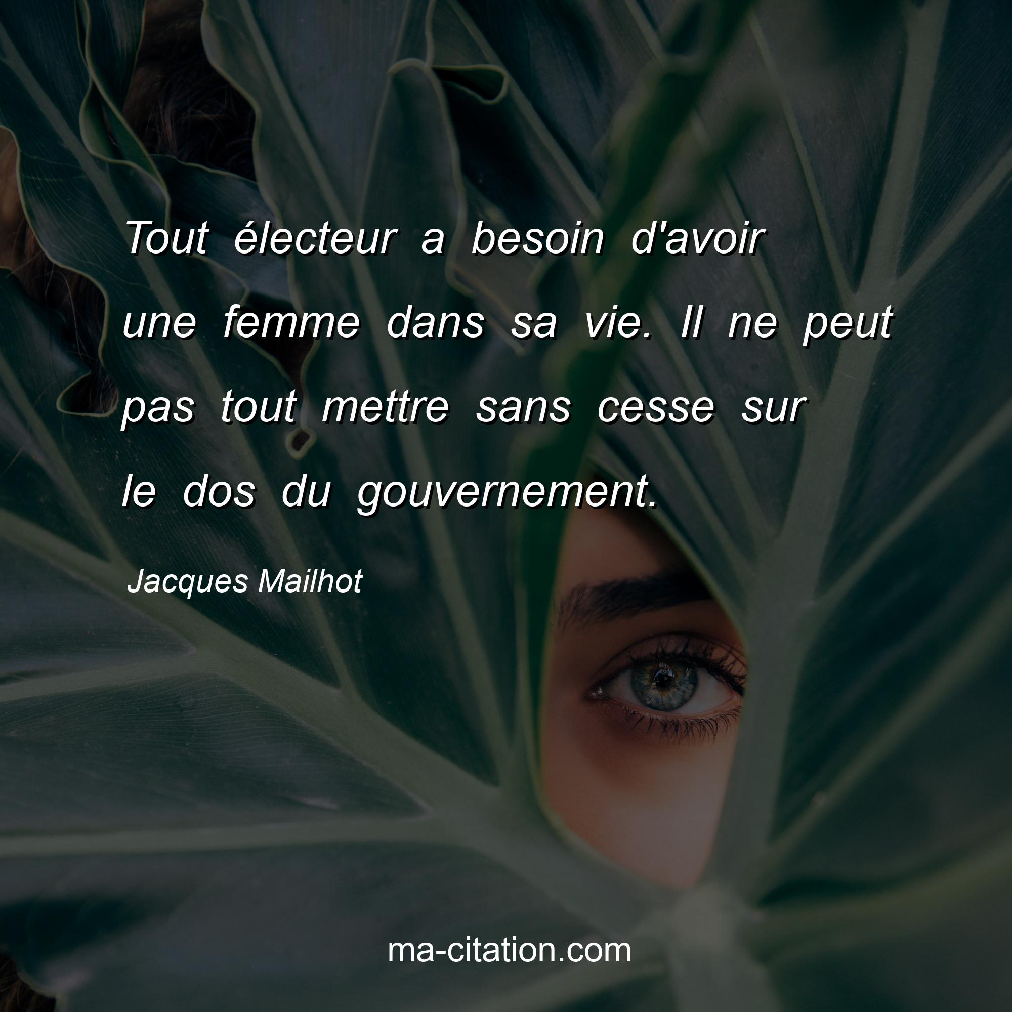 Citation sur la vie de Jacques Mailhot :Tout électeur a besoin d'avoir une femme dans sa vie. Il ne peut pas tout mettre sans cesse sur le dos du gouvernement.