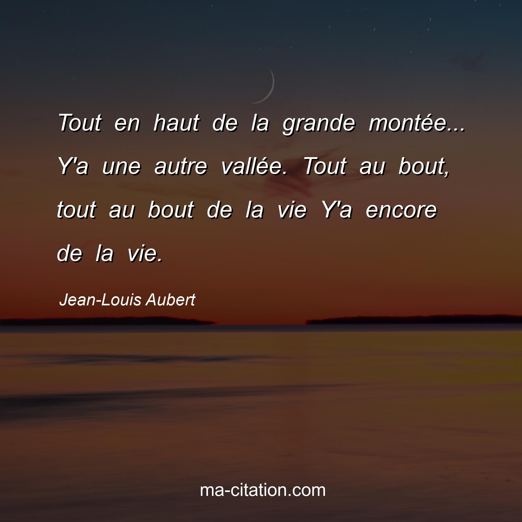 Citation sur la vie de Jean-Louis Aubert :Tout en haut de la grande montée... Y'a une autre vallée. Tout au bout, tout au bout de la vie Y'a encore de la vie.