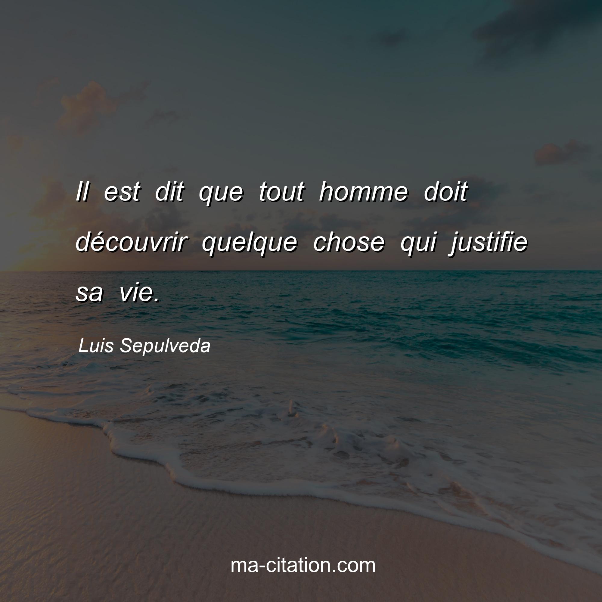 Luis Sepulveda est l'auteur de la citation sur la vie "Il est dit que tout homme doit découvrir quelque chose qui justifie sa vie.".