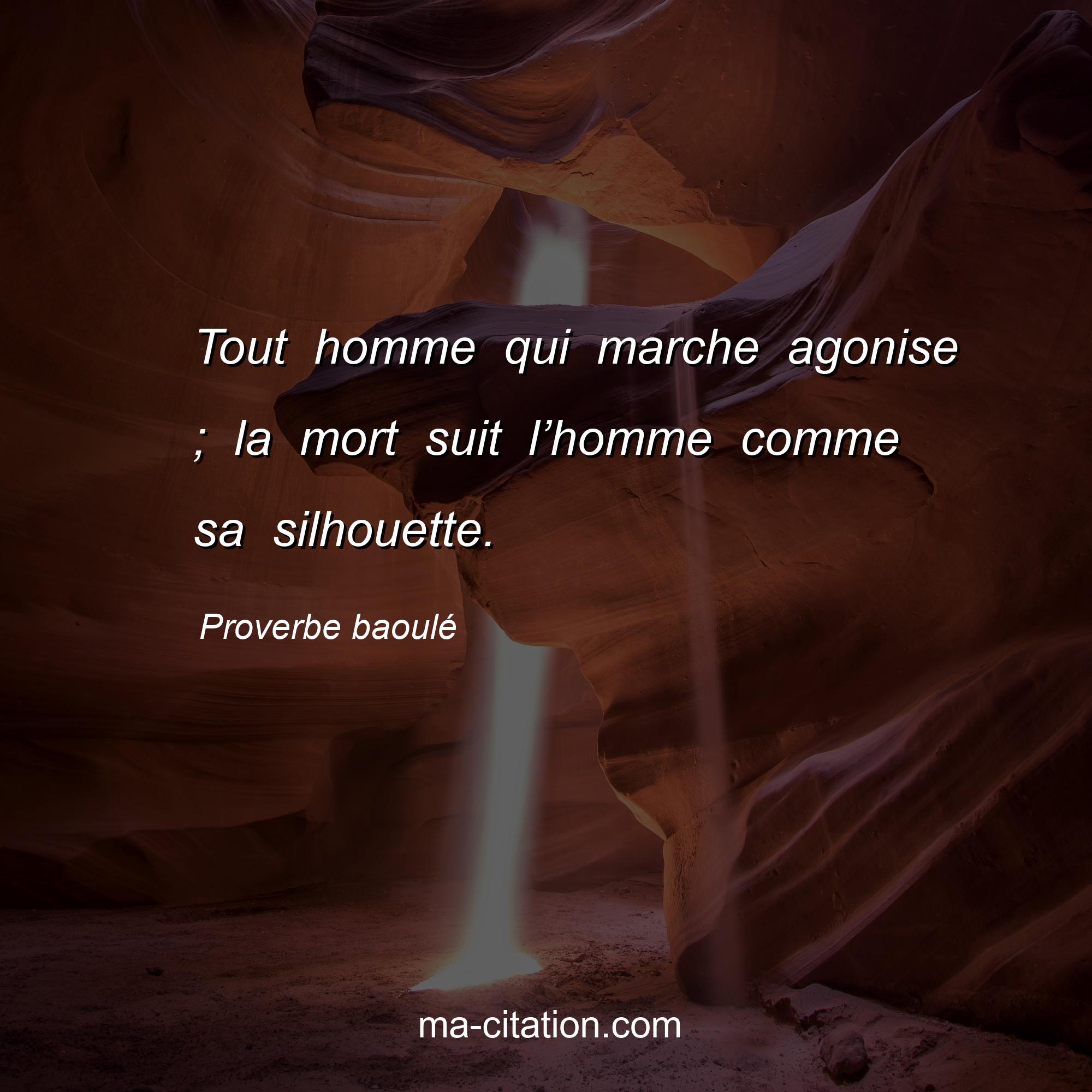 Proverbe baoulé sur la vie :Tout homme qui marche agonise ; la mort suit l’homme comme sa silhouette.