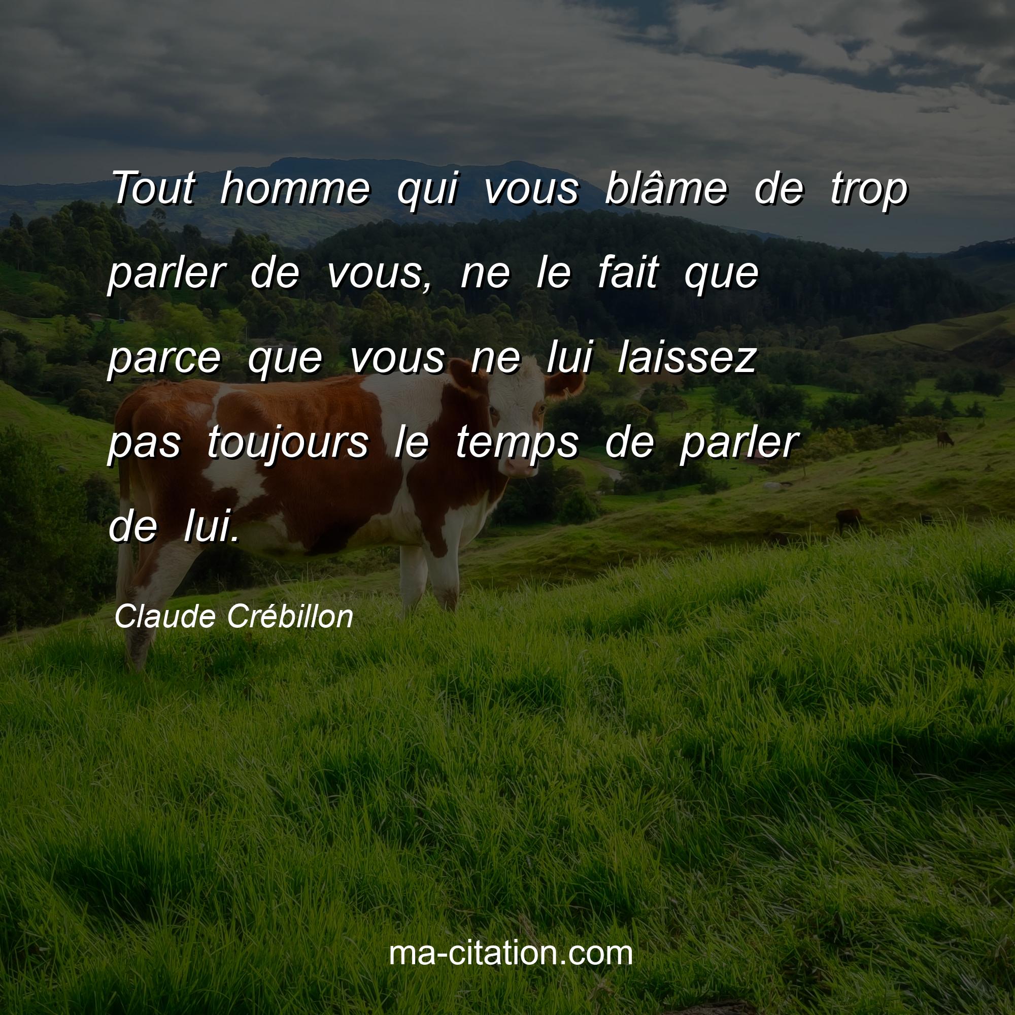 Citation sur la vie de Claude Crébillon :Tout homme qui vous blâme de trop parler de vous, ne le fait que parce que vous ne lui laissez pas toujours le temps de parler de lui.