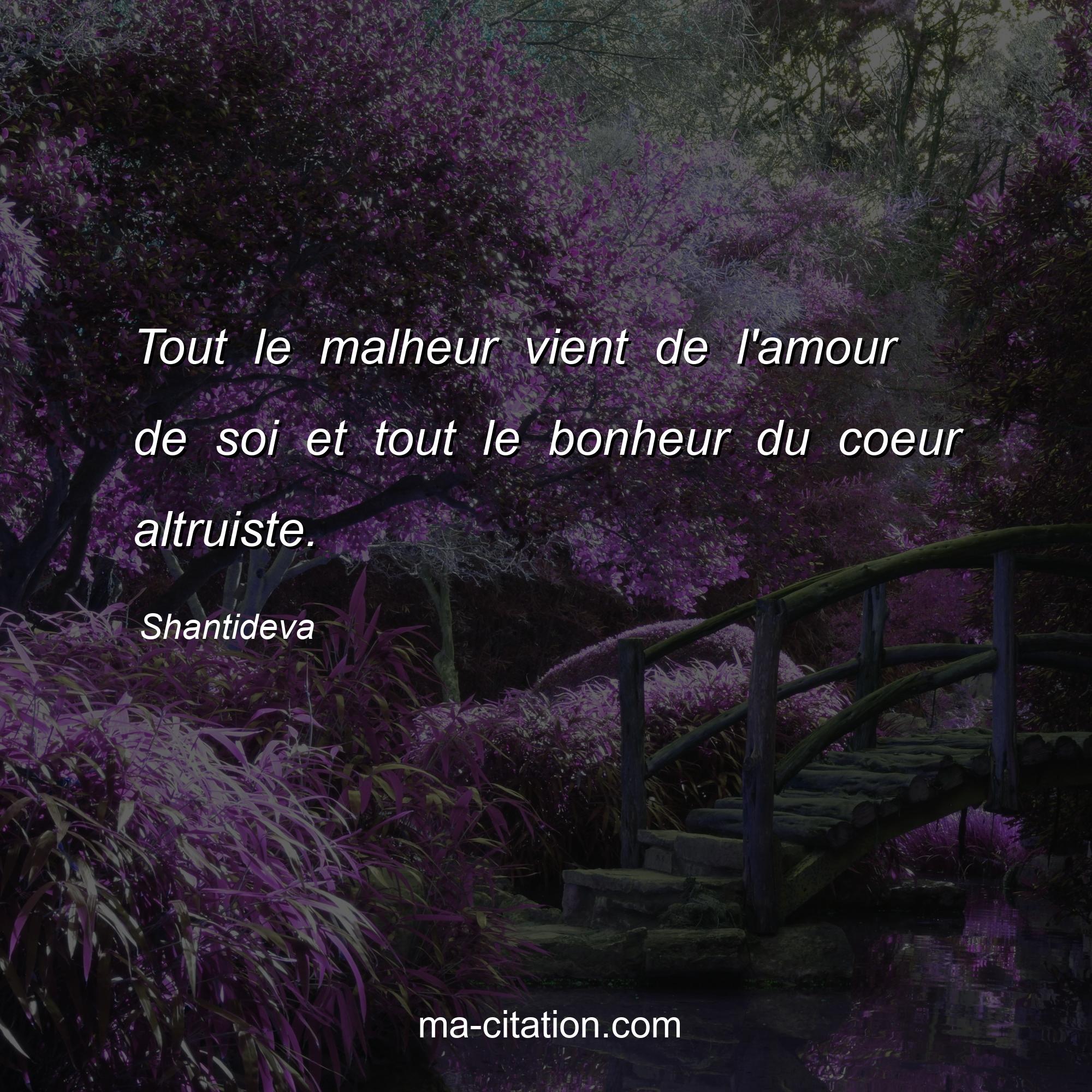 Citation sur la vie de Shantideva :Tout le malheur vient de l'amour de soi et tout le bonheur du coeur altruiste.