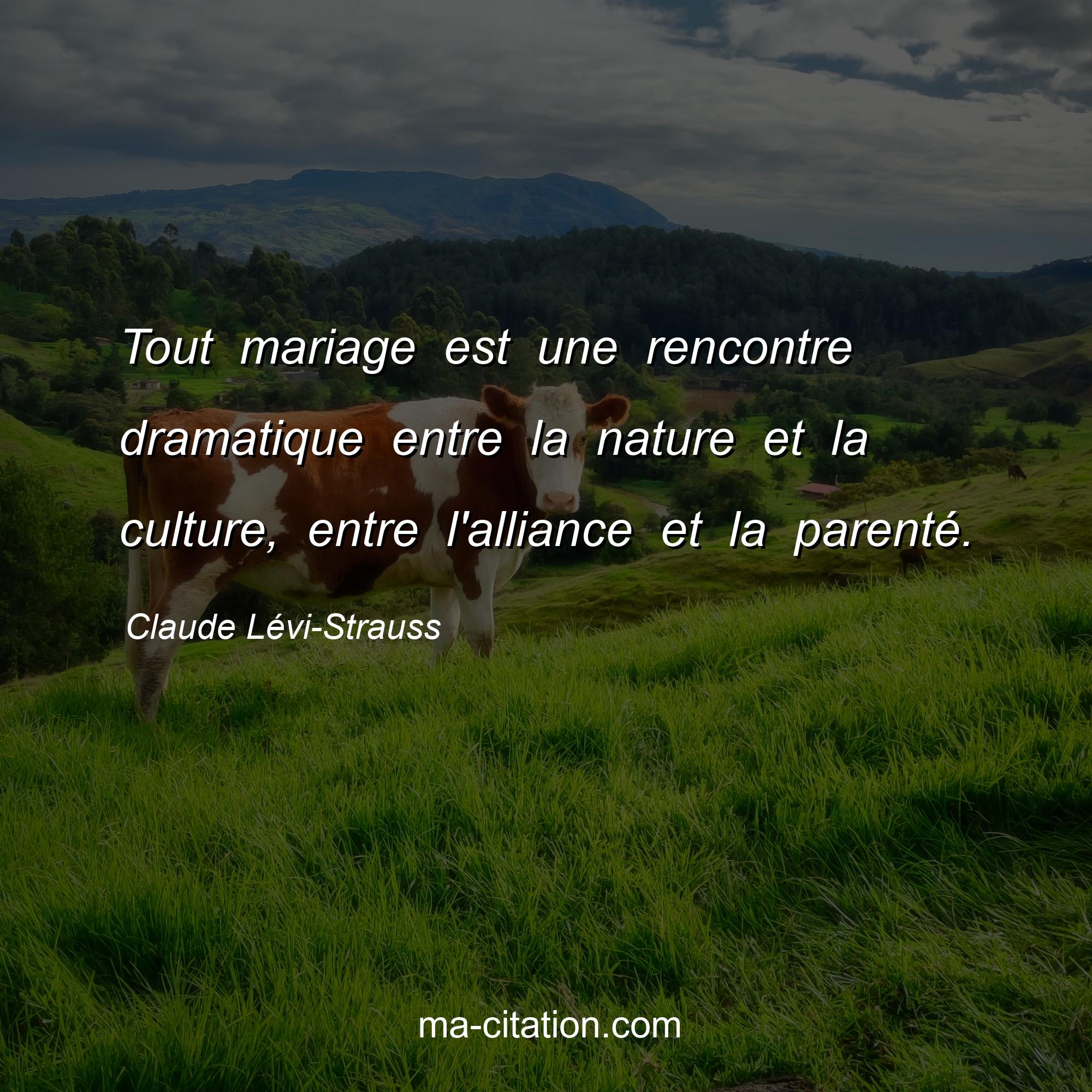 Citation sur la vie de Claude Lévi-Strauss :Tout mariage est une rencontre dramatique entre la nature et la culture, entre l'alliance et la parenté.