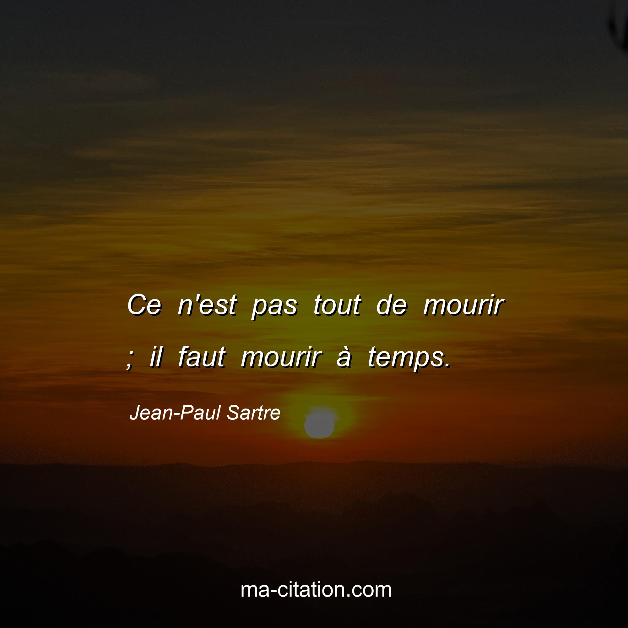 Citation sur la vie de Jean-Paul Sartre :Ce n'est pas tout de mourir ; il faut mourir à temps.
