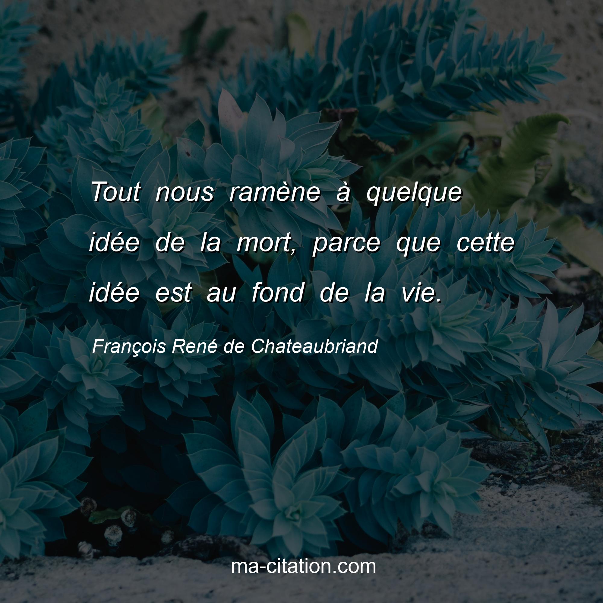 Citation sur la vie de François René de Chateaubriand :Tout nous ramène à quelque idée de la mort, parce que cette idée est au fond de la vie.