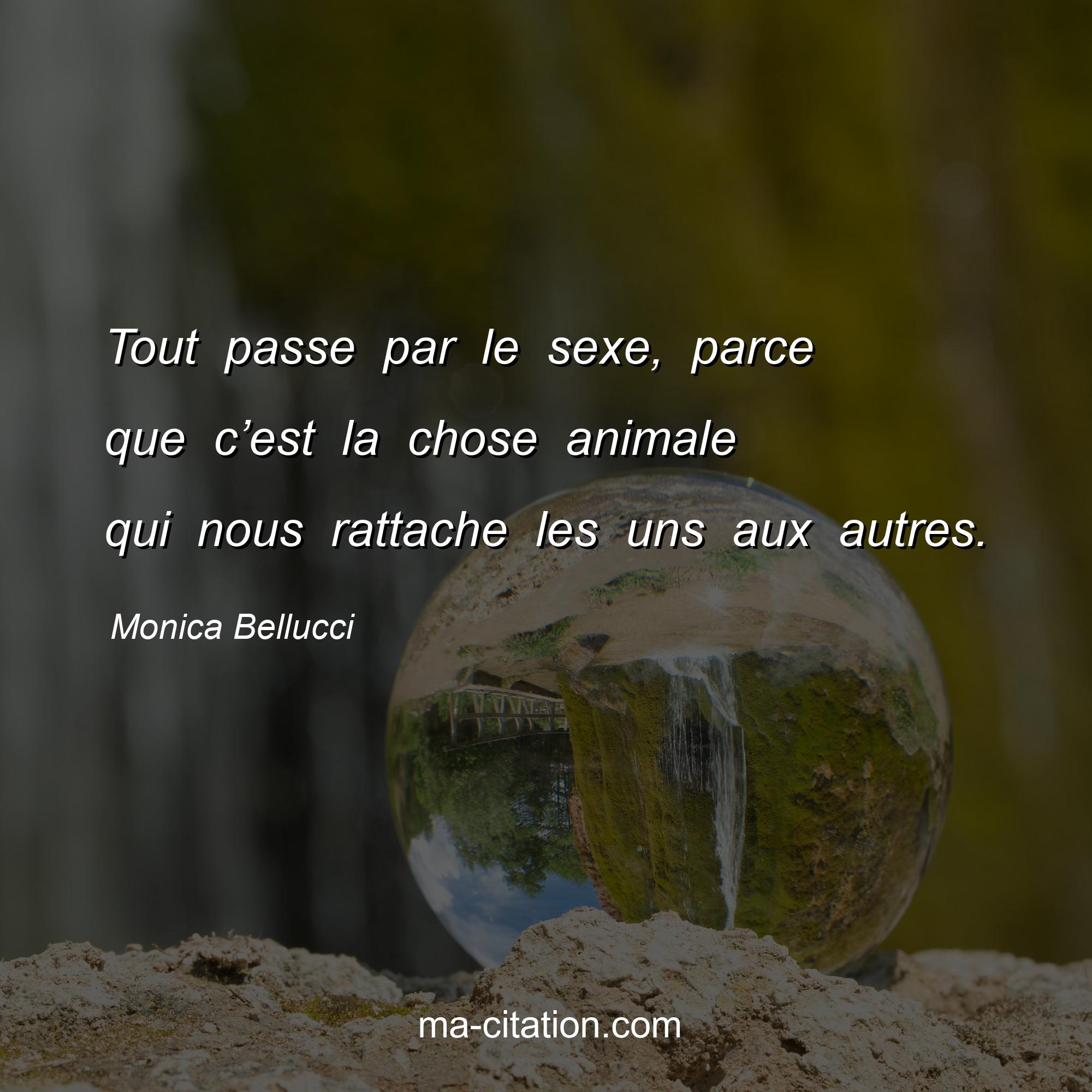 Monica Bellucci est l'auteur de la citation sur la vie "Tout passe par le sexe, parce que c’est la chose animale qui nous rattache les uns aux autres.".