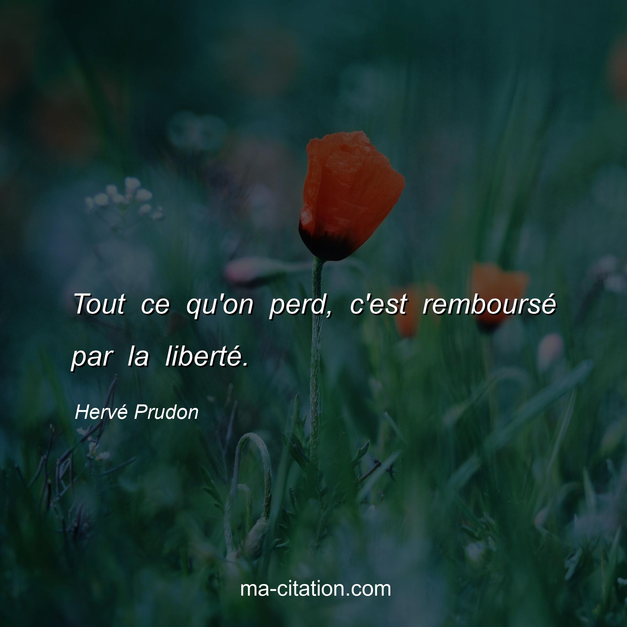 Hervé Prudon est l'auteur de la citation sur la vie "Tout ce qu'on perd, c'est remboursé par la liberté.".