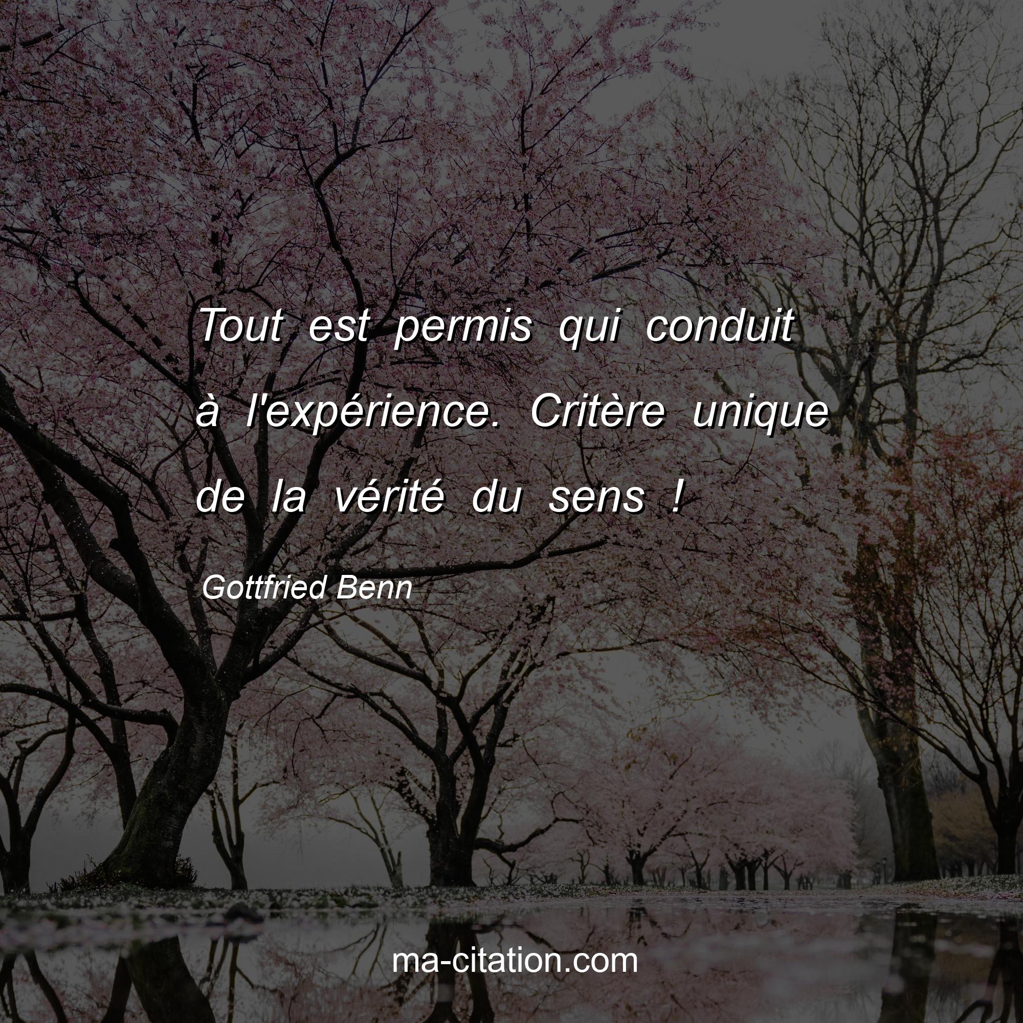 Citation sur la vie de Gottfried Benn :Tout est permis qui conduit à l'expérience. Critère unique de la vérité du sens !