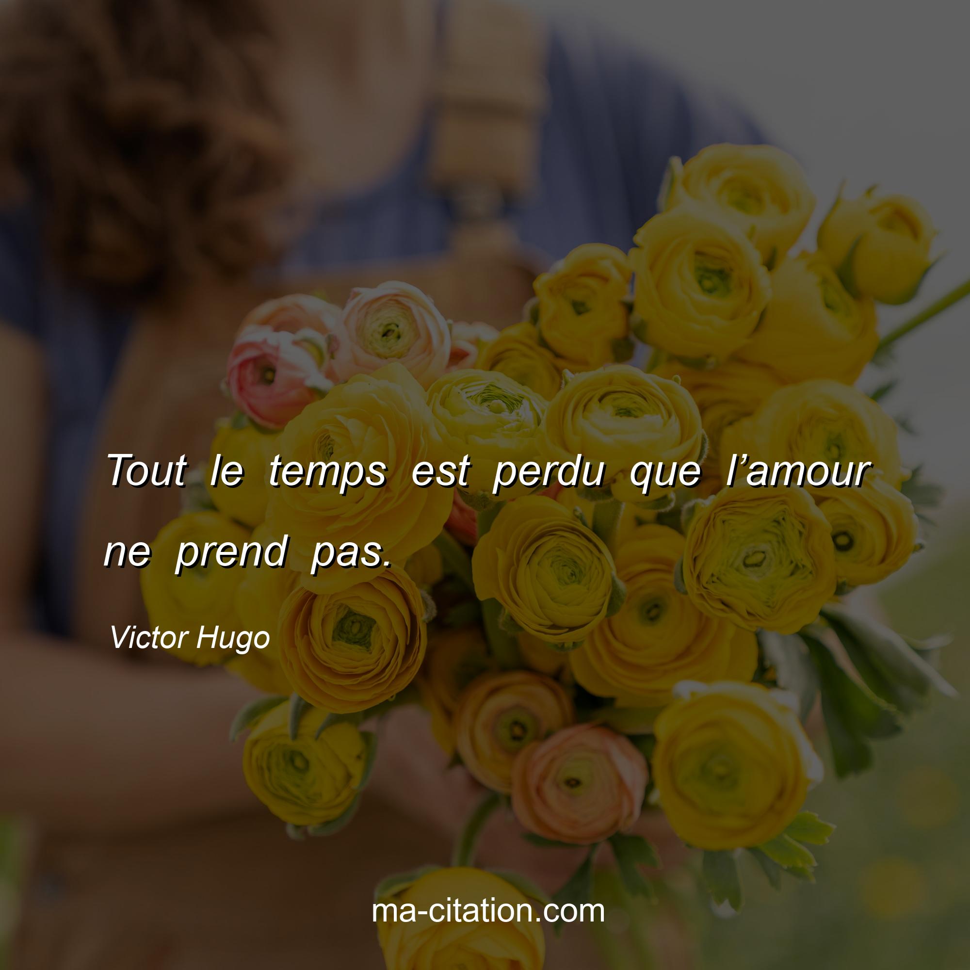 Victor Hugo est l'auteur de la citation sur la vie "Tout le temps est perdu que l’amour ne prend pas.".