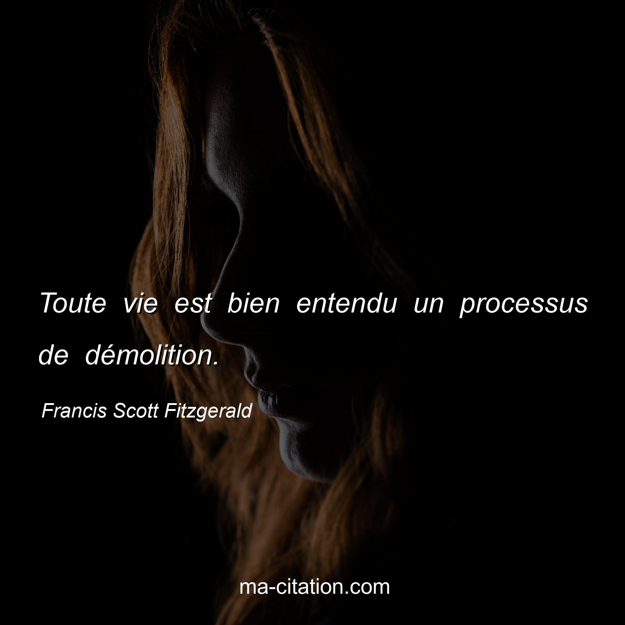 Citation sur la vie de Francis Scott Fitzgerald :Toute vie est bien entendu un processus de démolition.