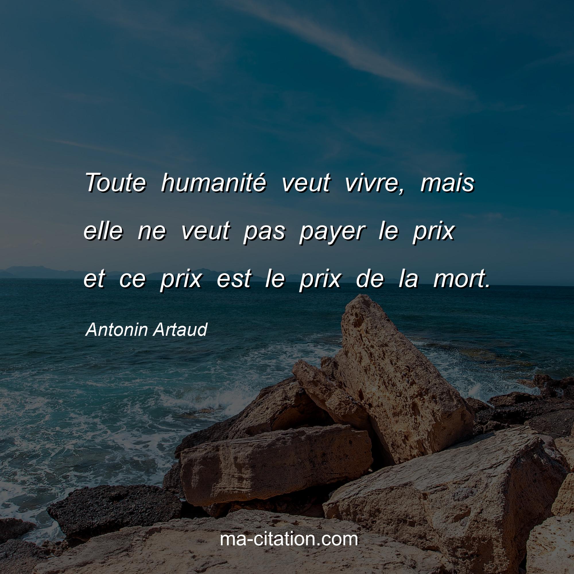 Antonin Artaud est l'auteur de la citation sur la vie "Toute humanité veut vivre, mais elle ne veut pas payer le prix et ce prix est le prix de la mort.".