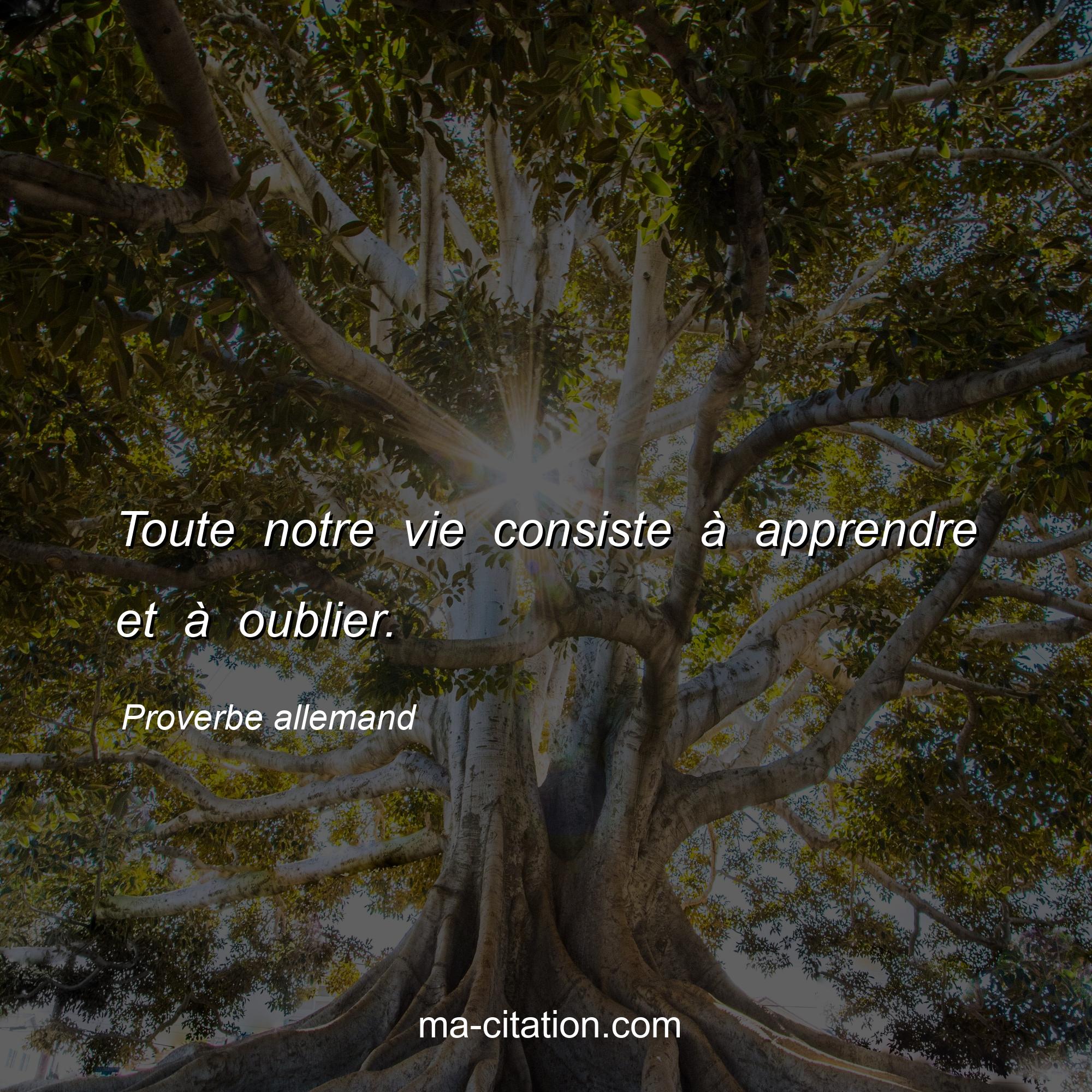 Proverbe allemand sur la vie :Toute notre vie consiste à apprendre et à oublier.