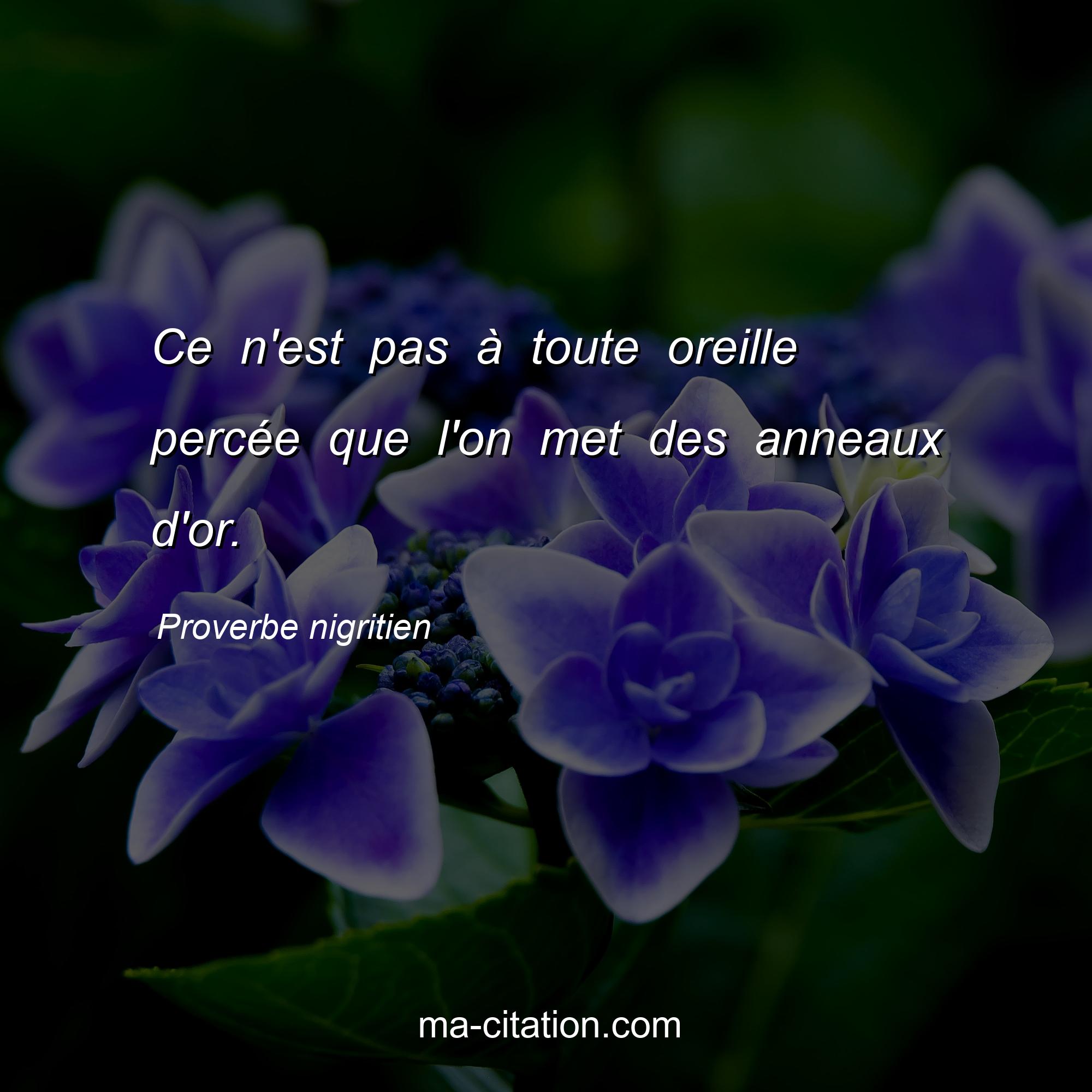Proverbe nigritien sur la vie :Ce n'est pas à toute oreille percée que l'on met des anneaux d'or.