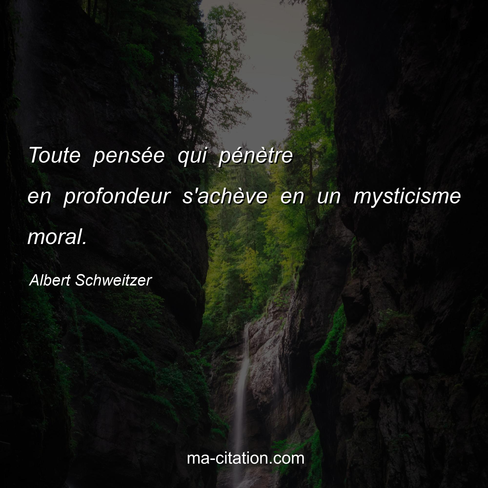 Citation sur la vie d'Albert Schweitzer :Toute pensée qui pénètre en profondeur s'achève en un mysticisme moral.