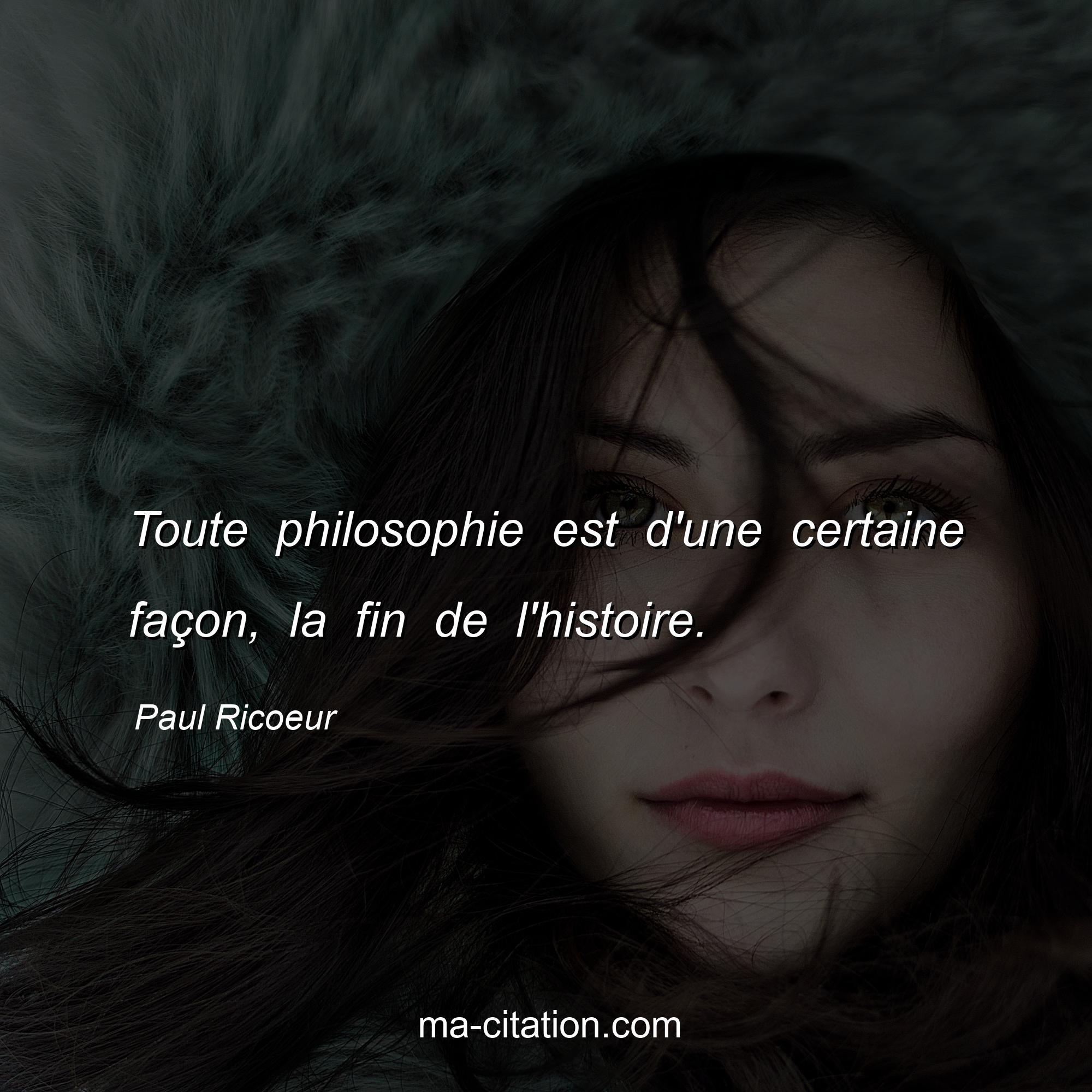 Citation sur la vie de Paul Ricoeur :Toute philosophie est d'une certaine façon, la fin de l'histoire.