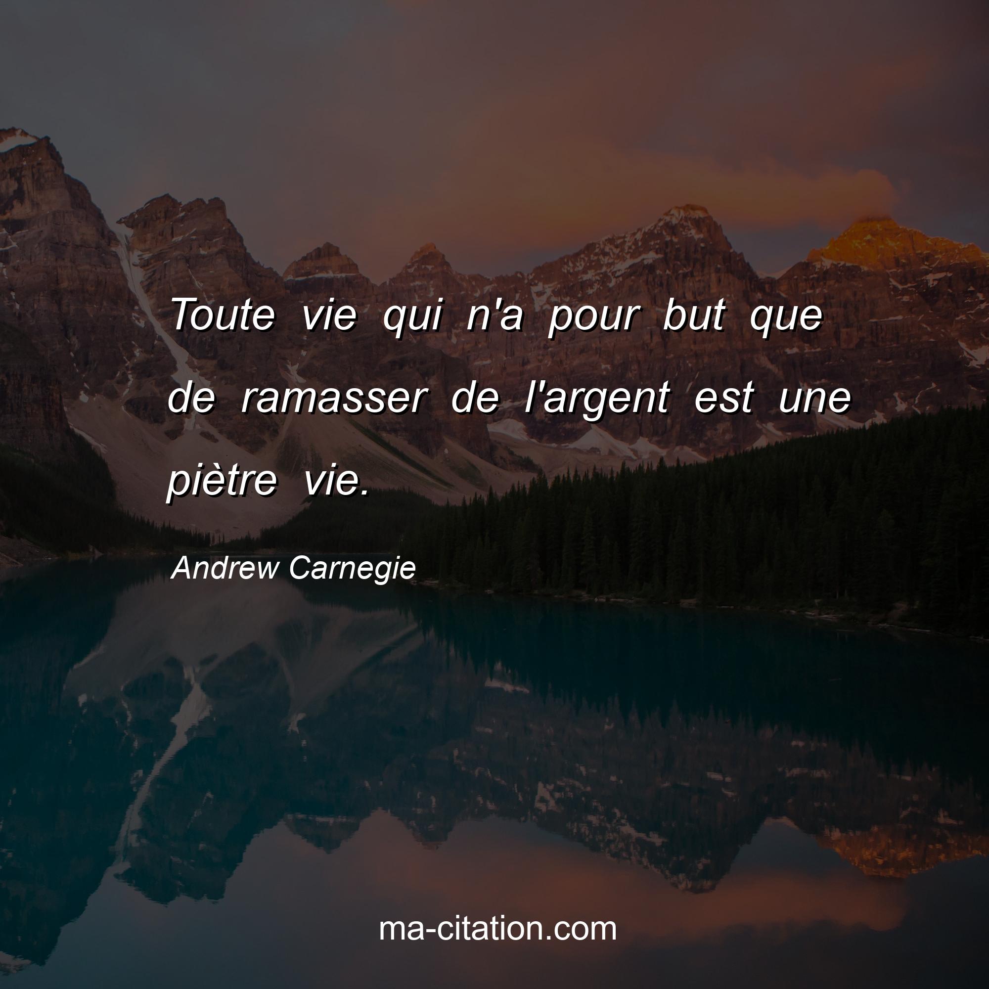 Citation sur la vie d'Andrew Carnegie :Toute vie qui n'a pour but que de ramasser de l'argent est une piètre vie.