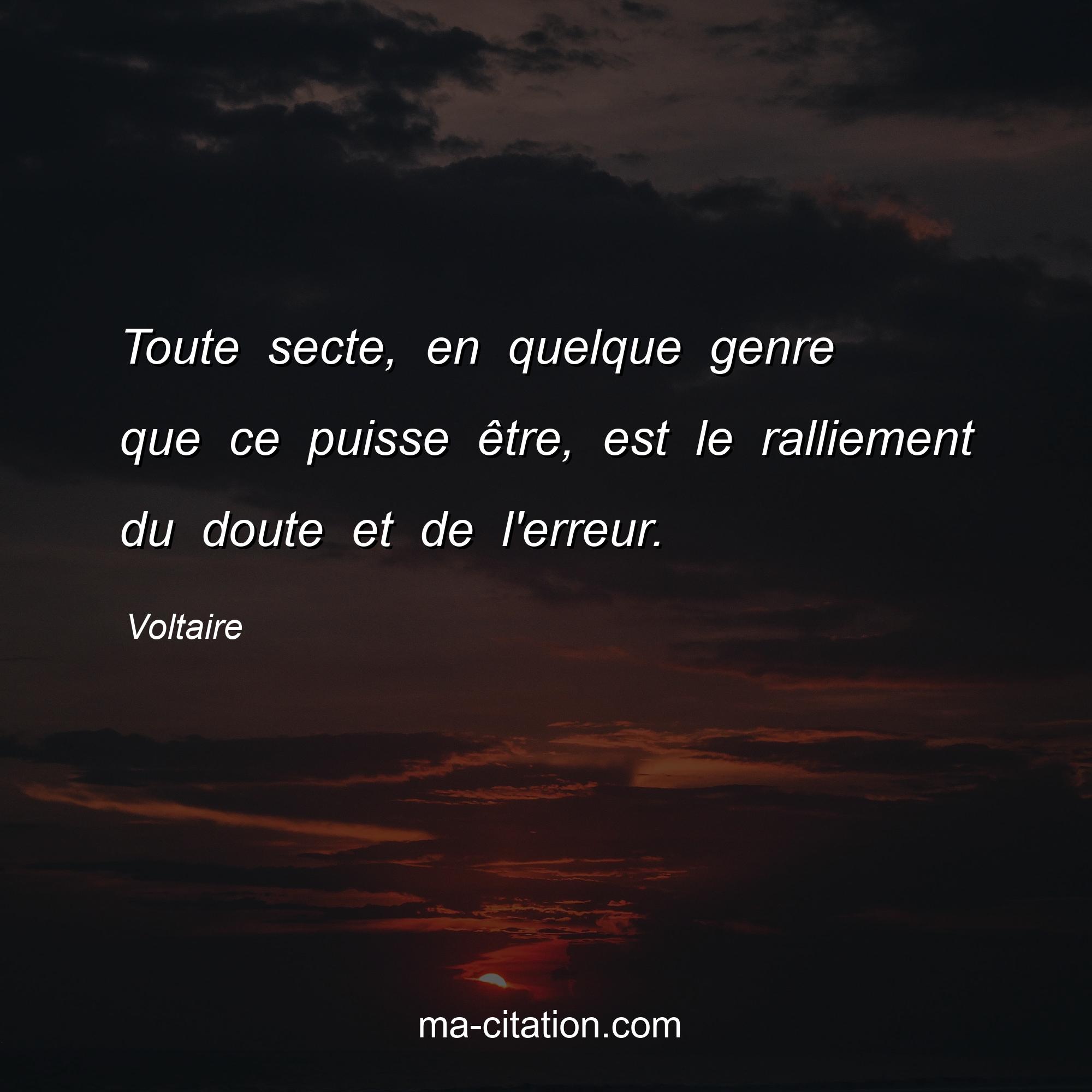 Citation sur la vie de Voltaire :Toute secte, en quelque genre que ce puisse être, est le ralliement du doute et de l'erreur.
