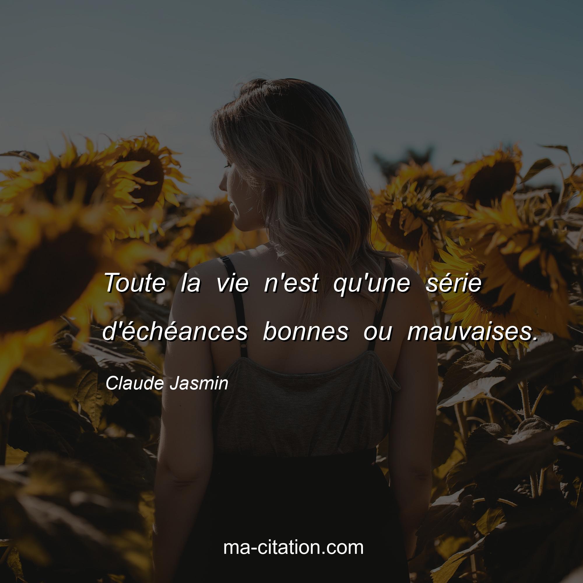 Claude Jasmin est l'auteur de la citation sur la vie "Toute la vie n'est qu'une série d'échéances bonnes ou mauvaises.".