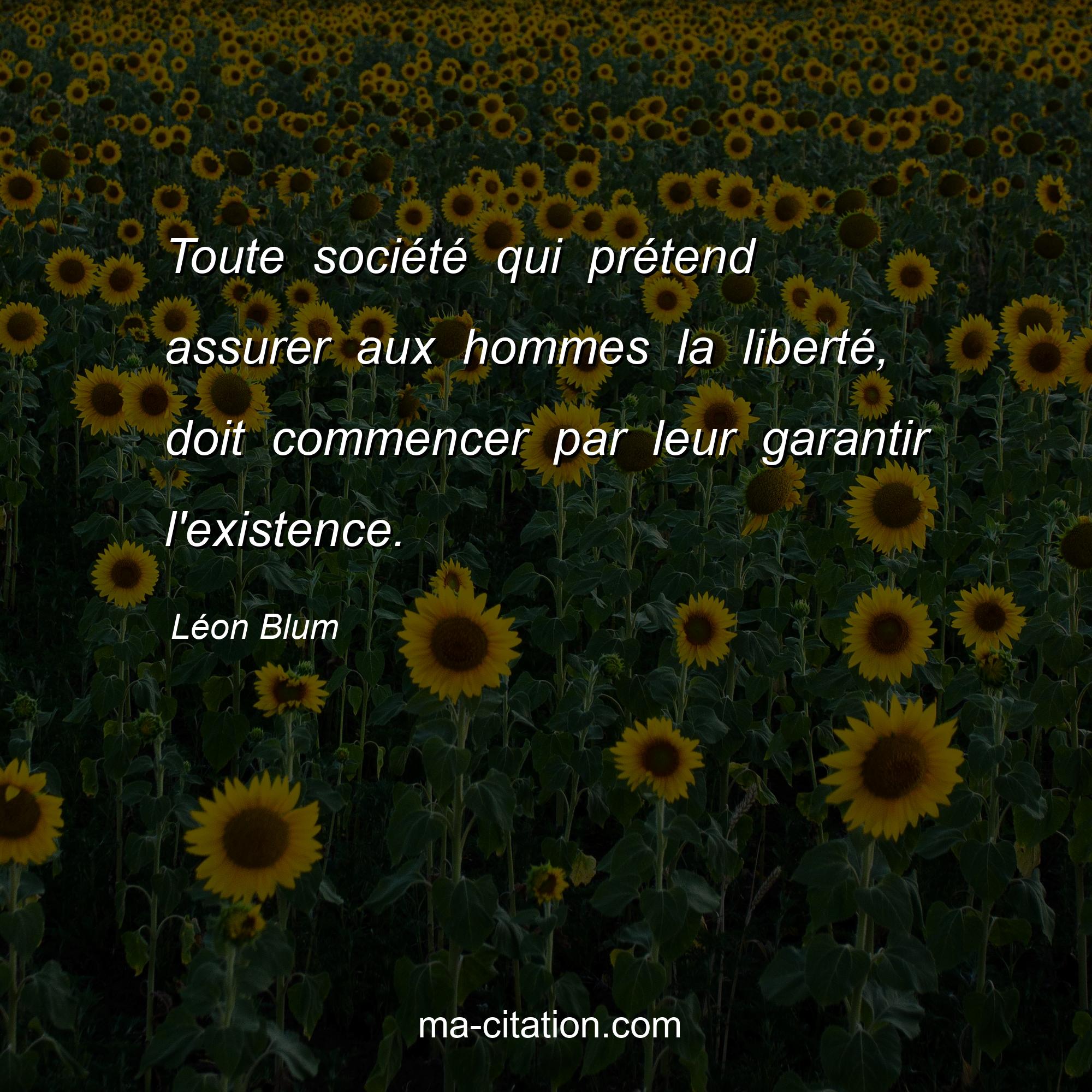 Citation sur la vie de Léon Blum :Toute société qui prétend assurer aux hommes la liberté, doit commencer par leur garantir l'existence.