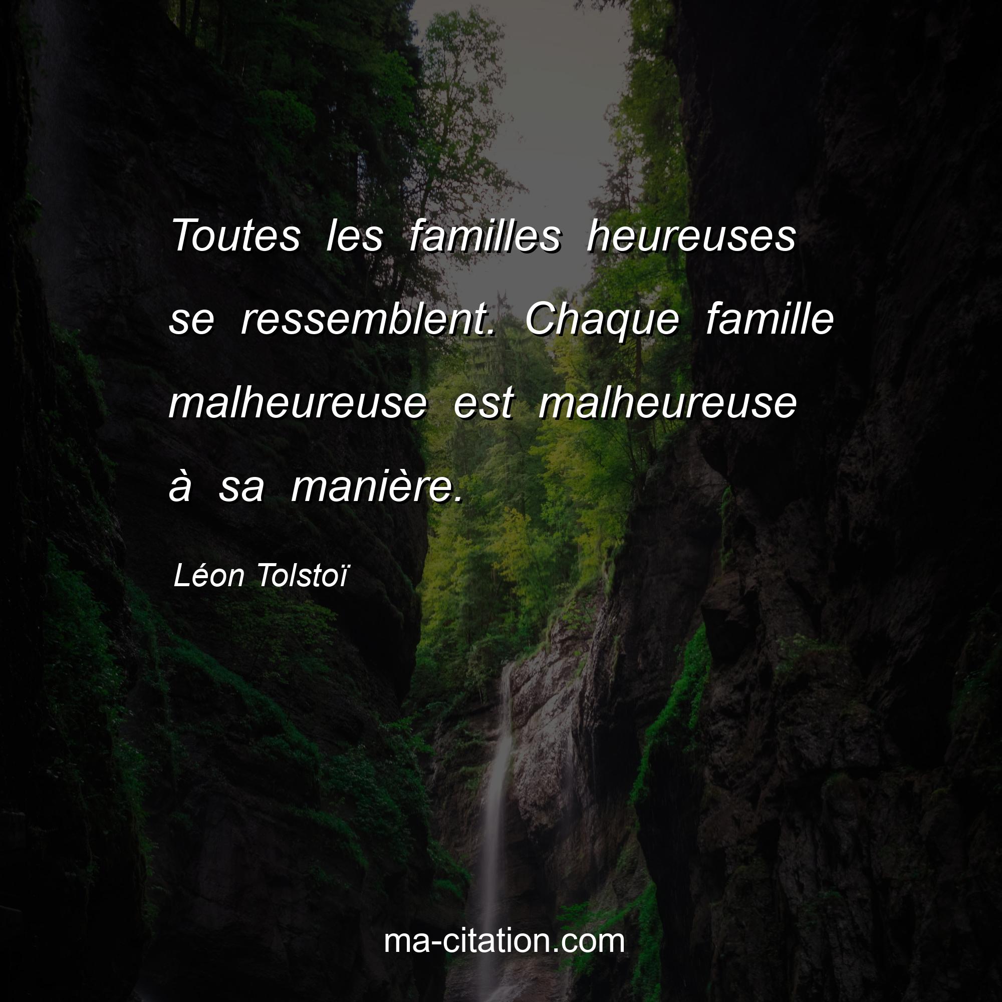 Citation sur la vie de Léon Tolstoï :Toutes les familles heureuses se ressemblent. Chaque famille malheureuse est malheureuse à sa manière.