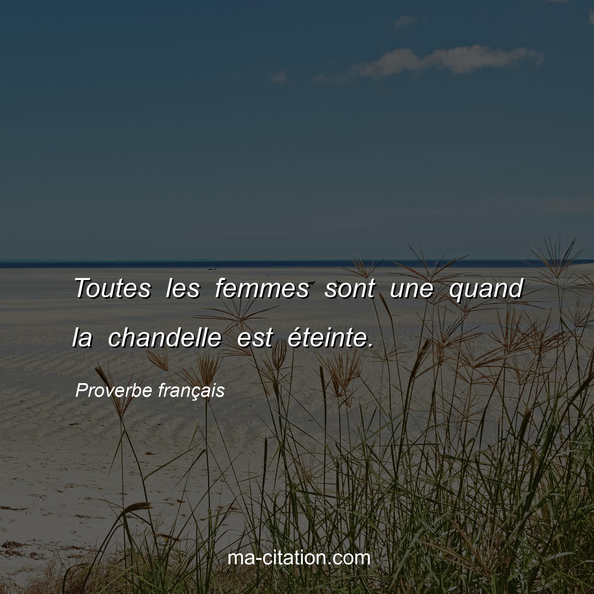 Proverbe français sur la vie :Toutes les femmes sont une quand la chandelle est éteinte.