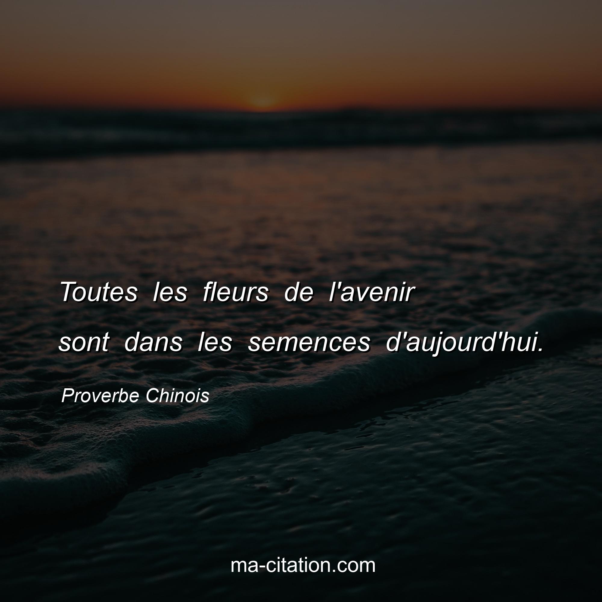 Proverbe Chinois sur la vie :Toutes les fleurs de l'avenir sont dans les semences d'aujourd'hui.