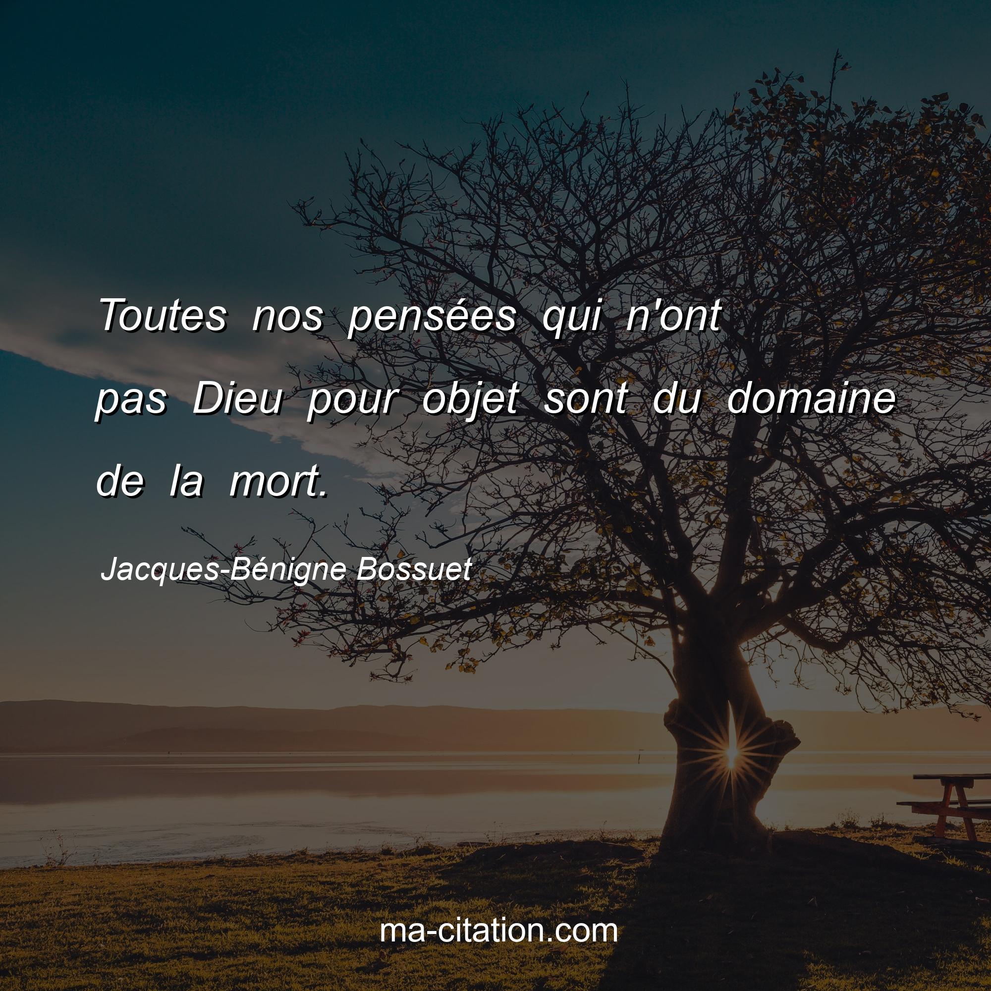Citation sur la vie de Jacques-Bénigne Bossuet :Toutes nos pensées qui n'ont pas Dieu pour objet sont du domaine de la mort.