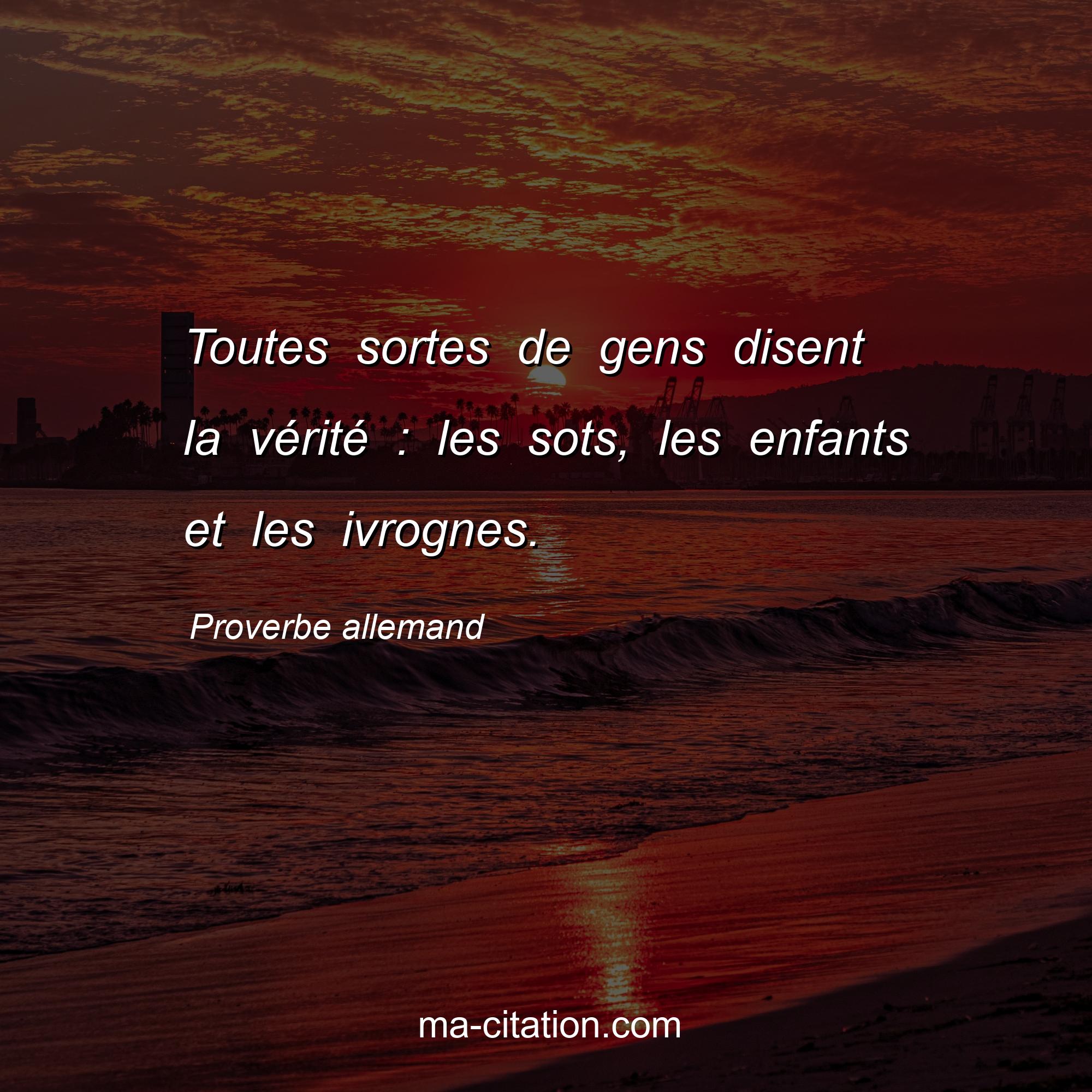 Proverbe allemand sur la vie :Toutes sortes de gens disent la vérité : les sots, les enfants et les ivrognes.