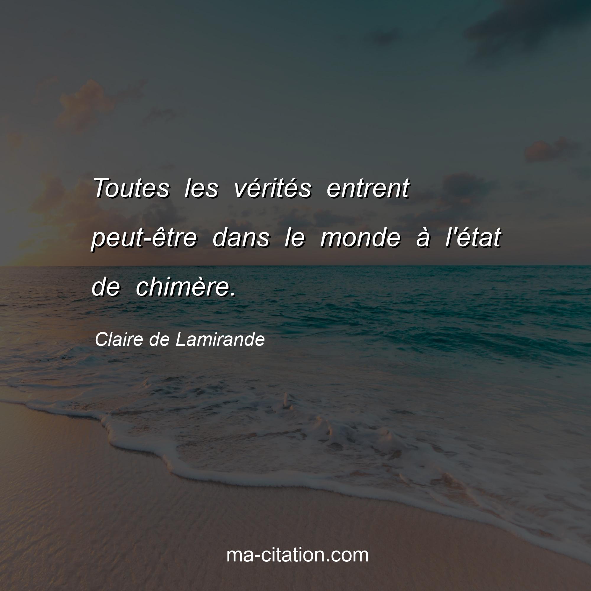 Claire de Lamirande est l'auteur de la citation sur la vie "Toutes les vérités entrent peut-être dans le monde à l'état de chimère.".