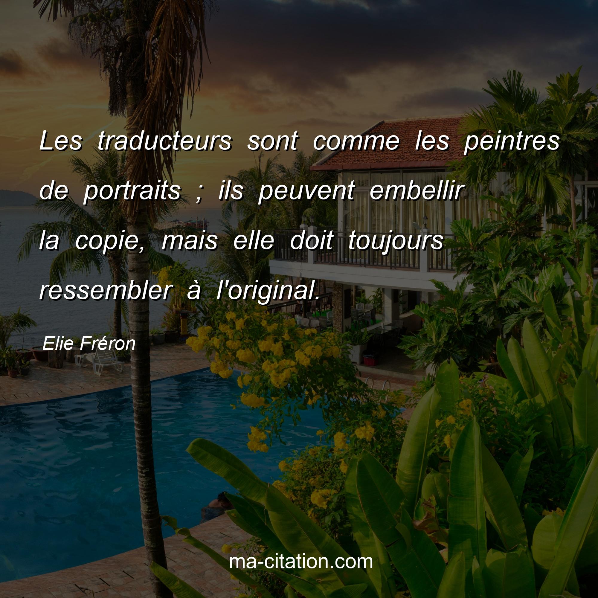 Citation sur la vie d'Elie Fréron :Les traducteurs sont comme les peintres de portraits ; ils peuvent embellir la copie, mais elle doit toujours ressembler à l'original.