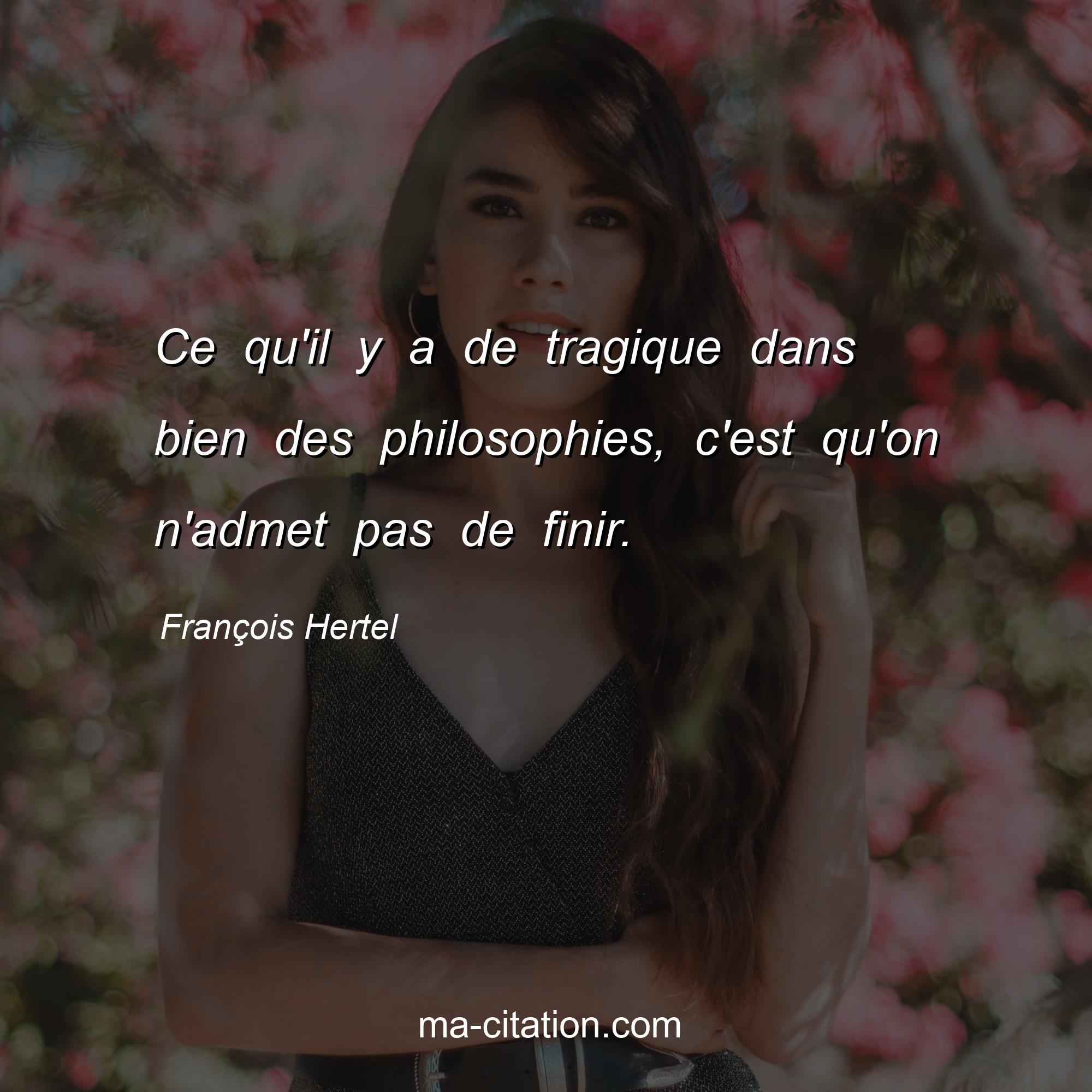 Citation sur la vie de François Hertel :Ce qu'il y a de tragique dans bien des philosophies, c'est qu'on n'admet pas de finir.