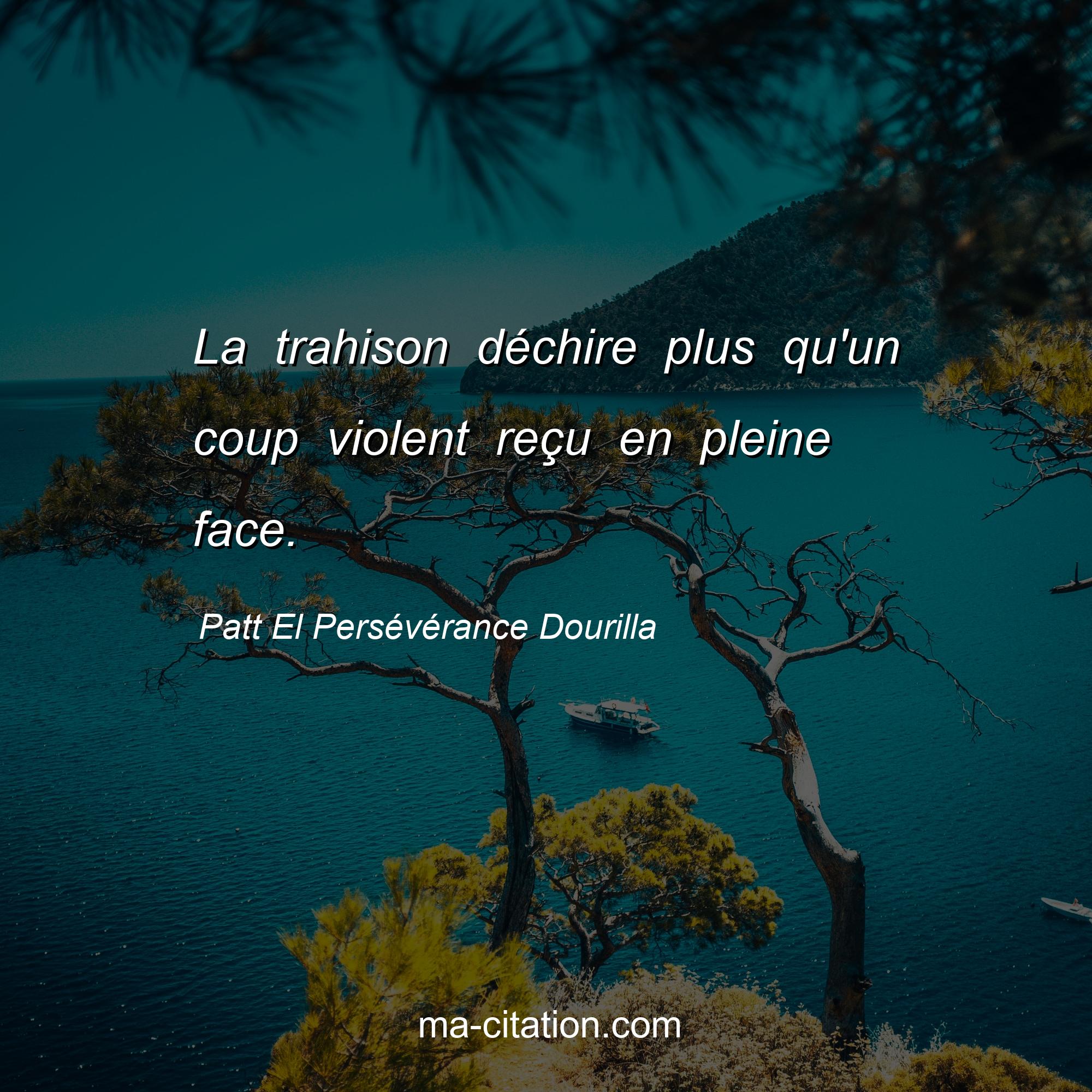 Patt El Persévérance Dourilla est l'auteur de la citation sur la vie "La trahison déchire plus qu'un coup violent reçu en pleine face.".