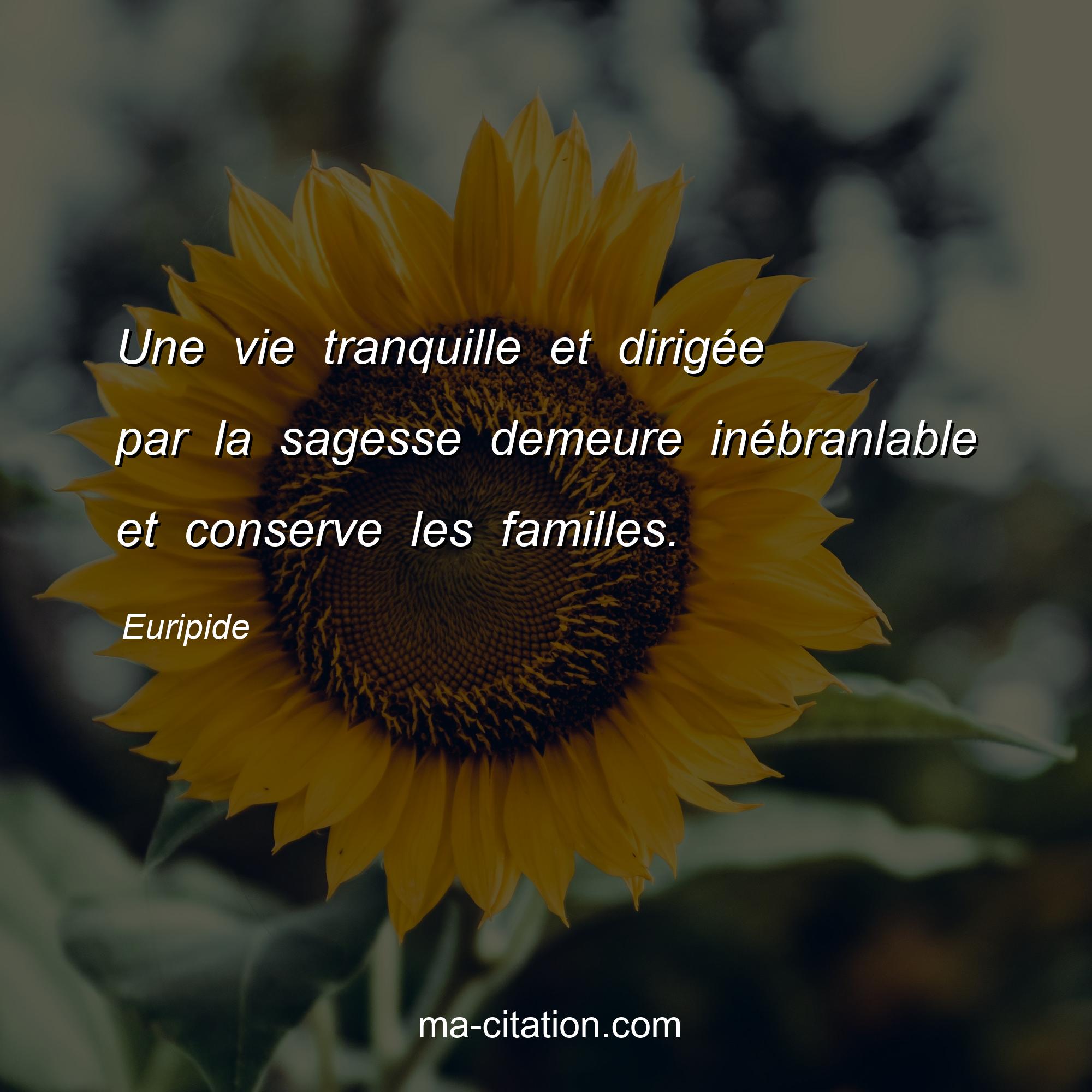 Citation sur la vie d'Euripide :Une vie tranquille et dirigée par la sagesse demeure inébranlable et conserve les familles.