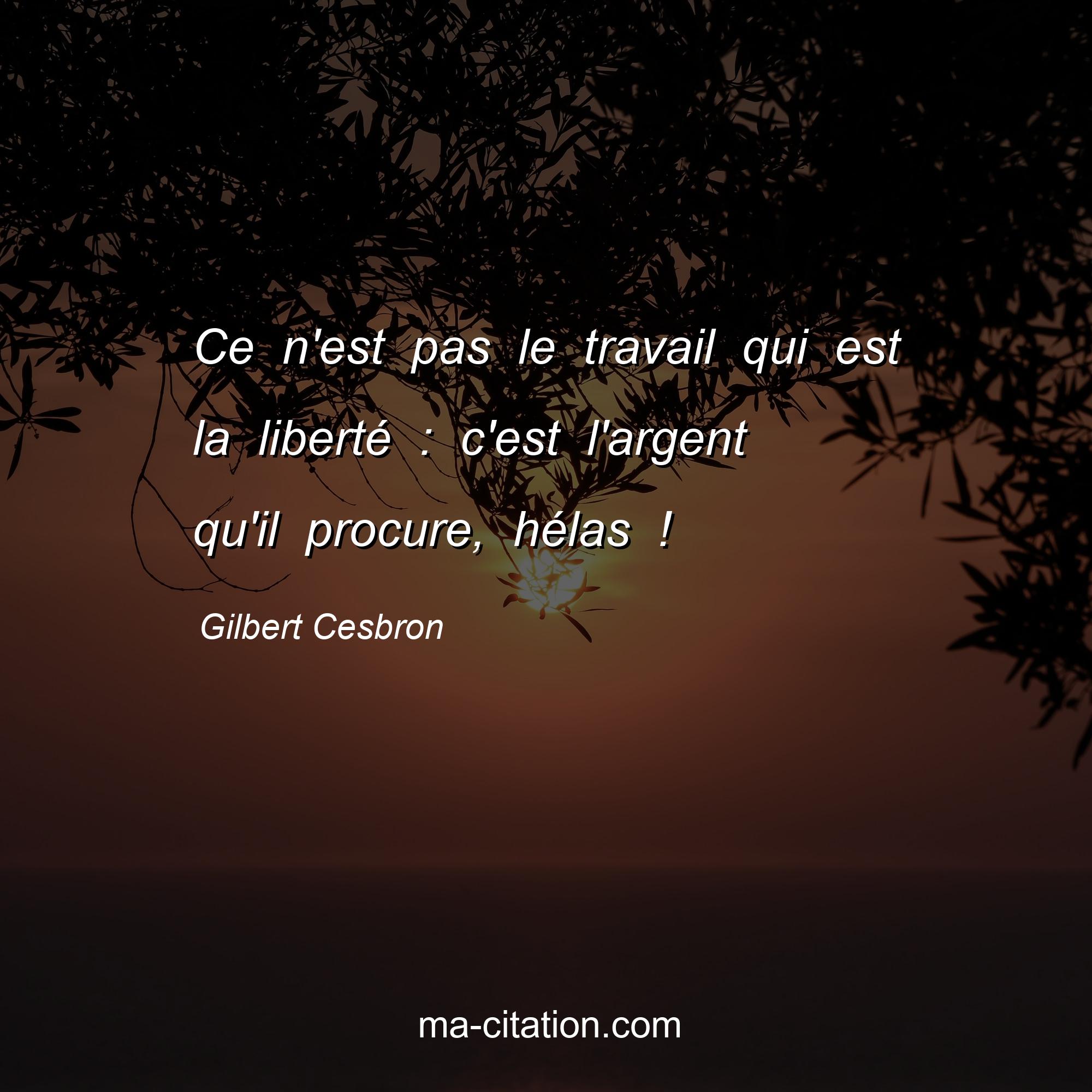 Citation sur la vie de Gilbert Cesbron :Ce n'est pas le travail qui est la liberté : c'est l'argent qu'il procure, hélas !