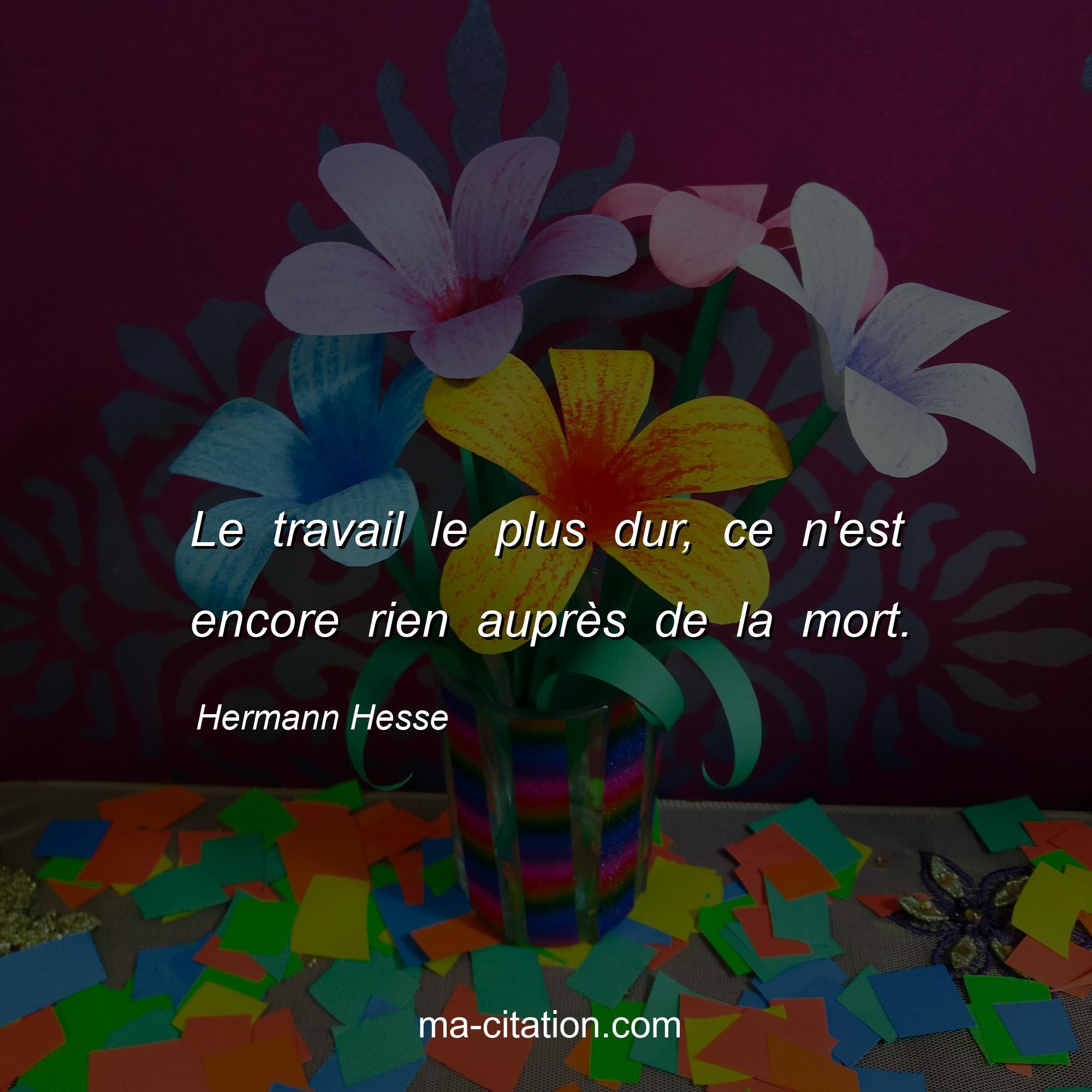 Citation sur la vie de Hermann Hesse :Le travail le plus dur, ce n'est encore rien auprès de la mort.