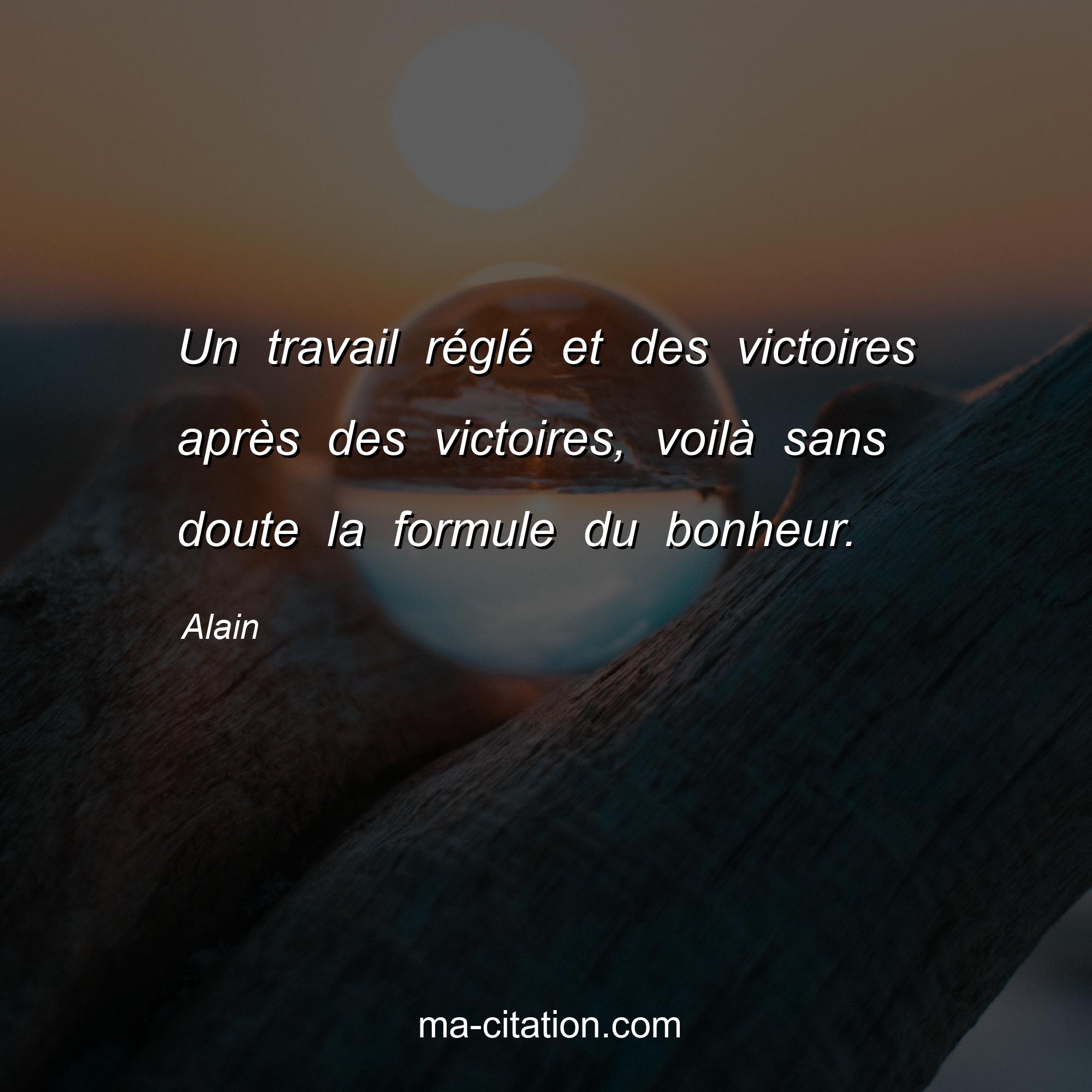 Citation sur la vie d'Alain :Un travail réglé et des victoires après des victoires, voilà sans doute la formule du bonheur.